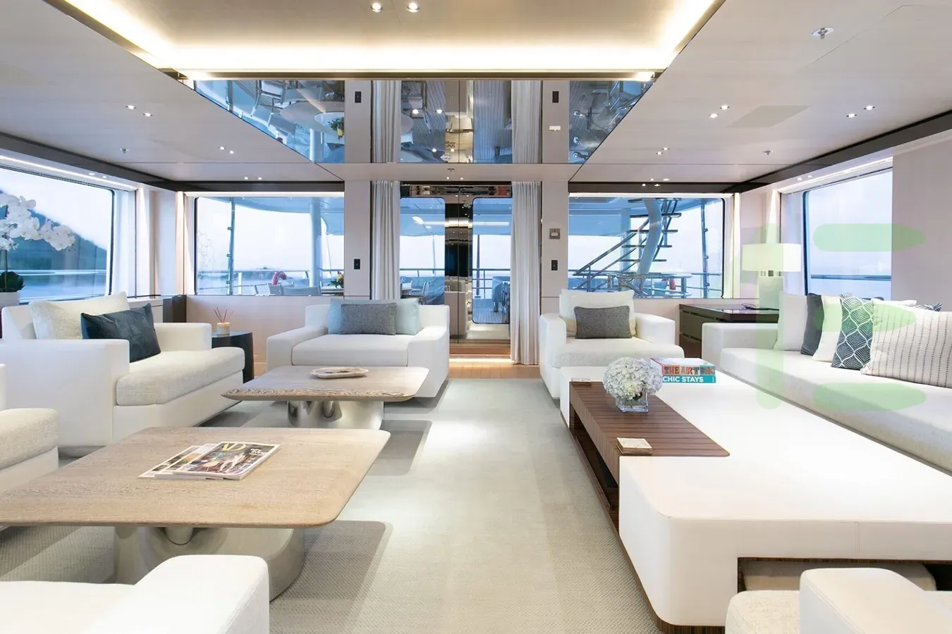 - Vast sundeck offering 360-degree views, with Jacuzzi, bar, dining area and comfortable sunpads