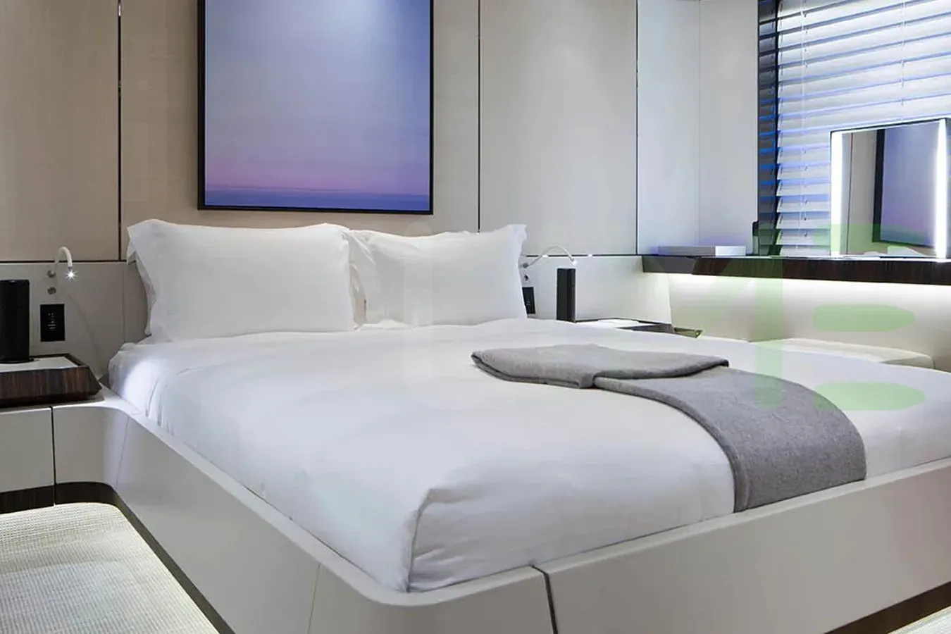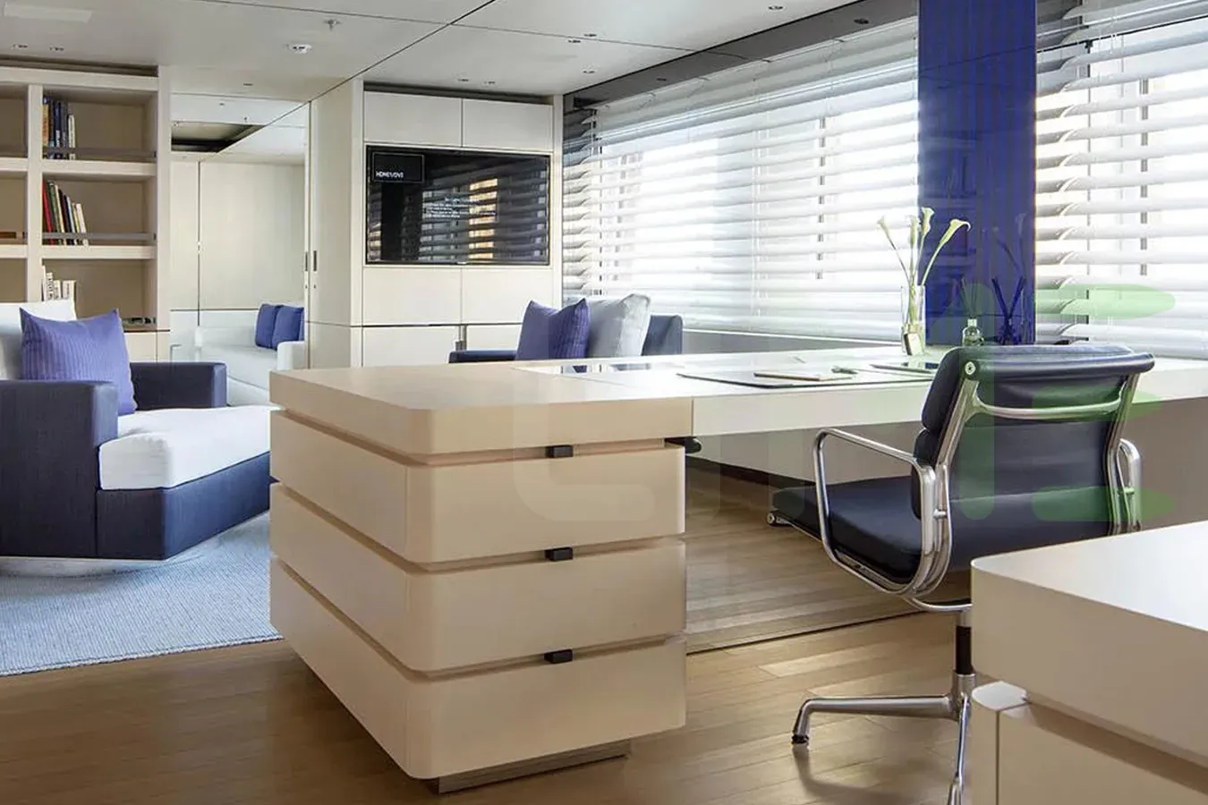 - Glorious full-beam master stateroom with private office and fold-down balcony