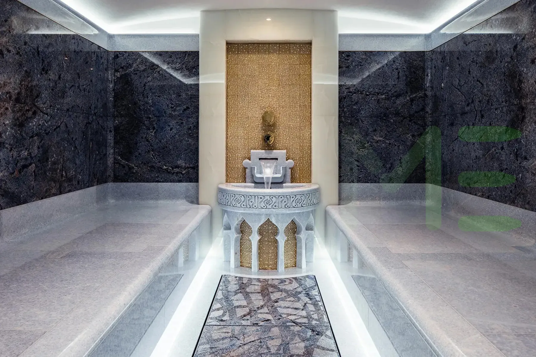 Her features include fireplace, beauty salon, elevator, underwater lights, beach club, gym, WiFi and air conditioning.