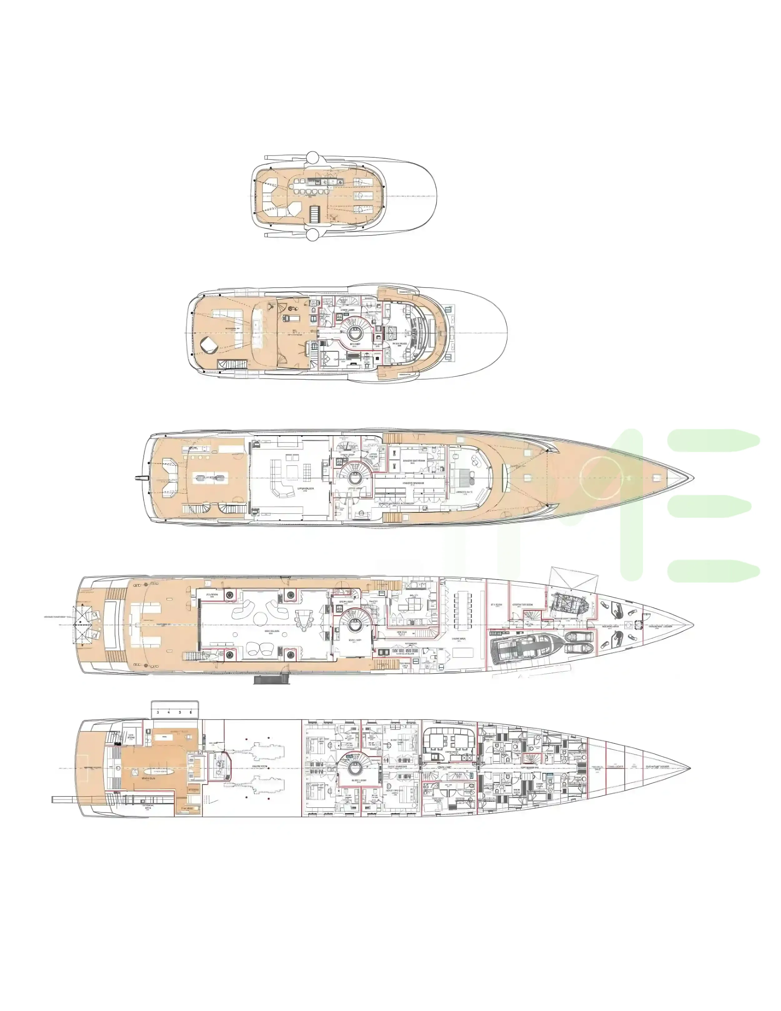 Request plans that include the layout of staterooms, guest areas, and outdoor spaces, as well as crew quarters and work areas.