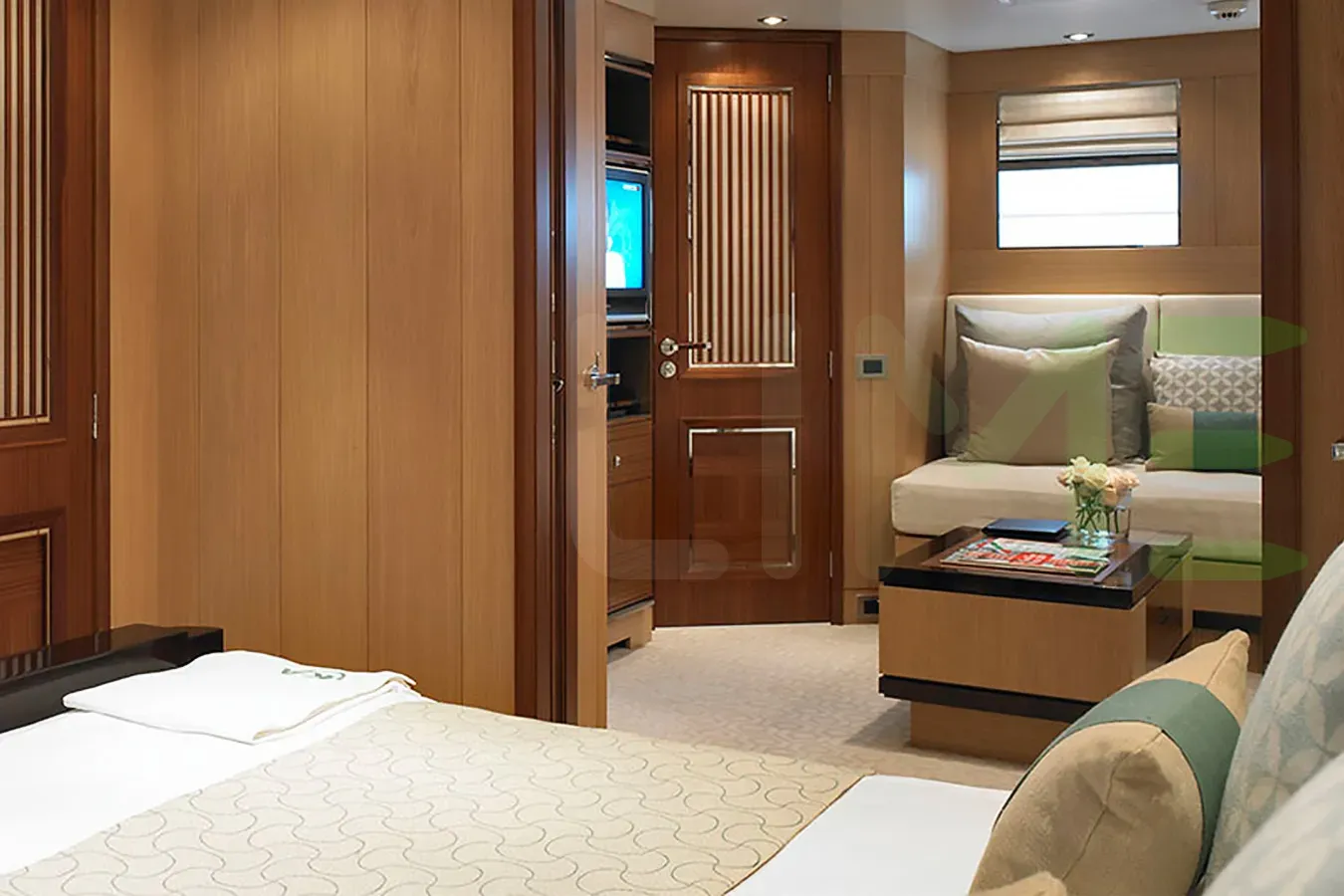 The styling of the KATHLEEN ANNE yacht features exterior design by Guido de Groot Design and interior design by Bannenberg & Rowell Design. Up to 10 guests can be accommodated on board the superyacht KATHLEEN ANNE in 5 staterooms. KATHLEEN ANNE also has accommodations for 7 crew members, including the yacht’s captain.