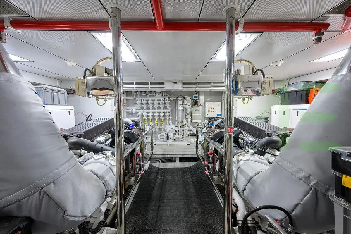 Powered by two Caterpillar main engines, each generating 1,435 horsepower, for a total combined output of 2,870 horsepower. Notably, the KIMBERLIE yacht is one of 2,680 yachts greater than 65’(19m) with Caterpillar engines.