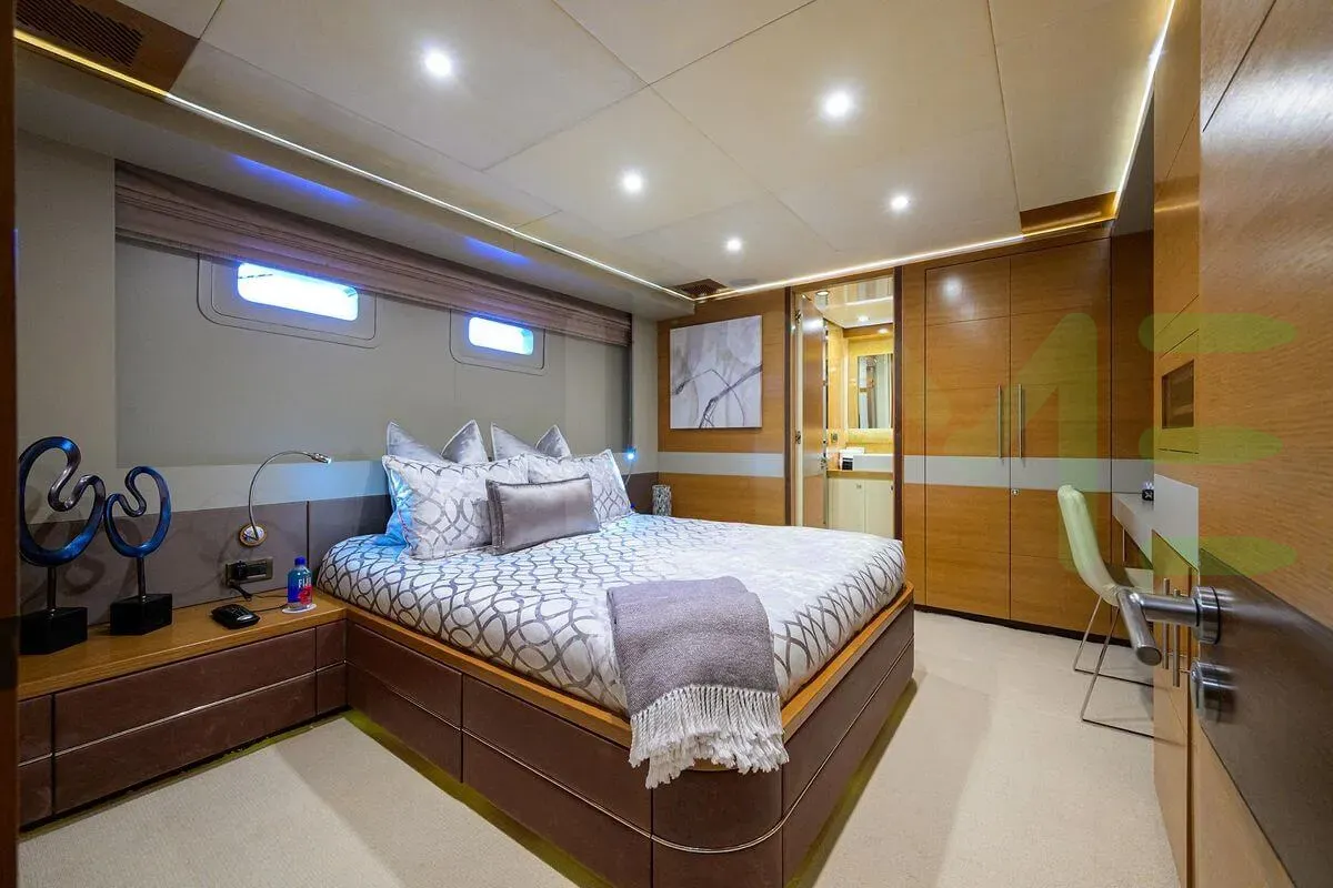 The styling of the KIMBERLIE yacht features exterior design by YD&AS and interior design by IAG Yachts Ltd. Up to 12 guests can be accommodated on board the superyacht KIMBERLIE in 6 staterooms. KIMBERLIE also has accommodations for 7 crew members, including the yacht’s captain.
