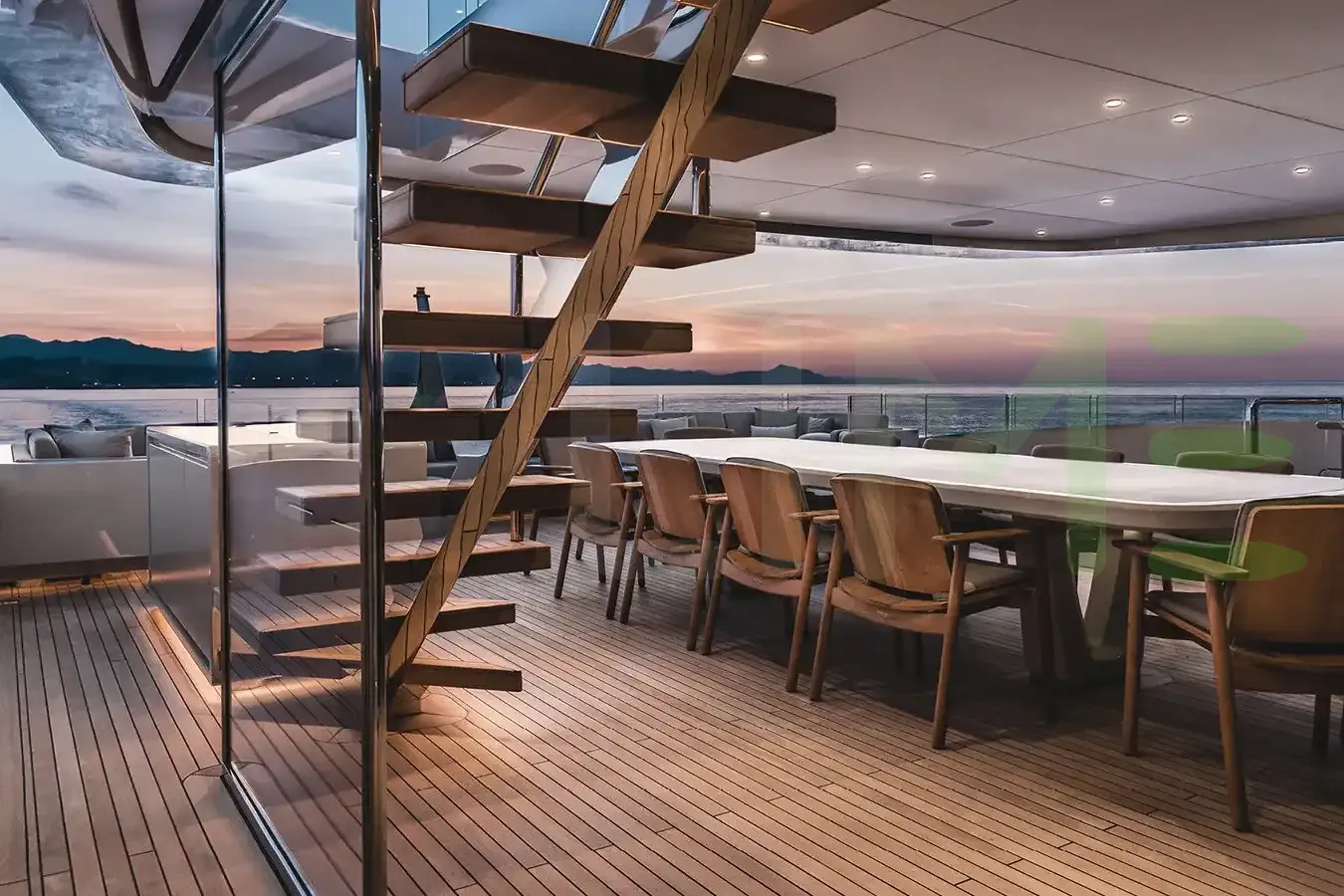 The styling of the KINDA yacht features exterior design by Francesco Paszkowski and interior design by Margherita Casprini. Up to 12 guests can be accommodated on board the superyacht KINDA in 6 staterooms. KINDA also has accommodations for 9 crew members, including the yacht’s captain.