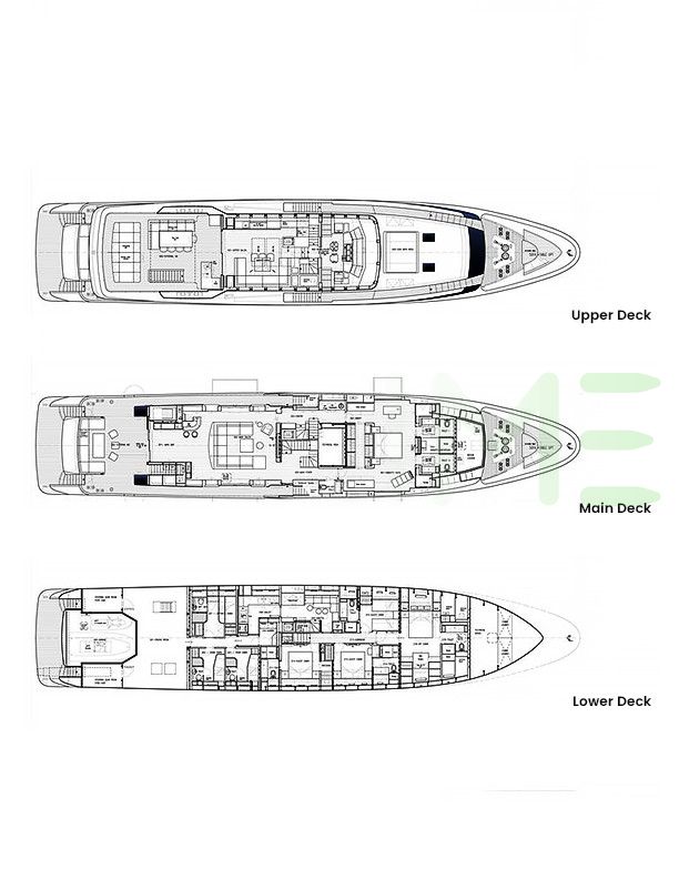 Request plans that include the layout of staterooms, guest areas, and outdoor spaces, as well as crew quarters and work areas.