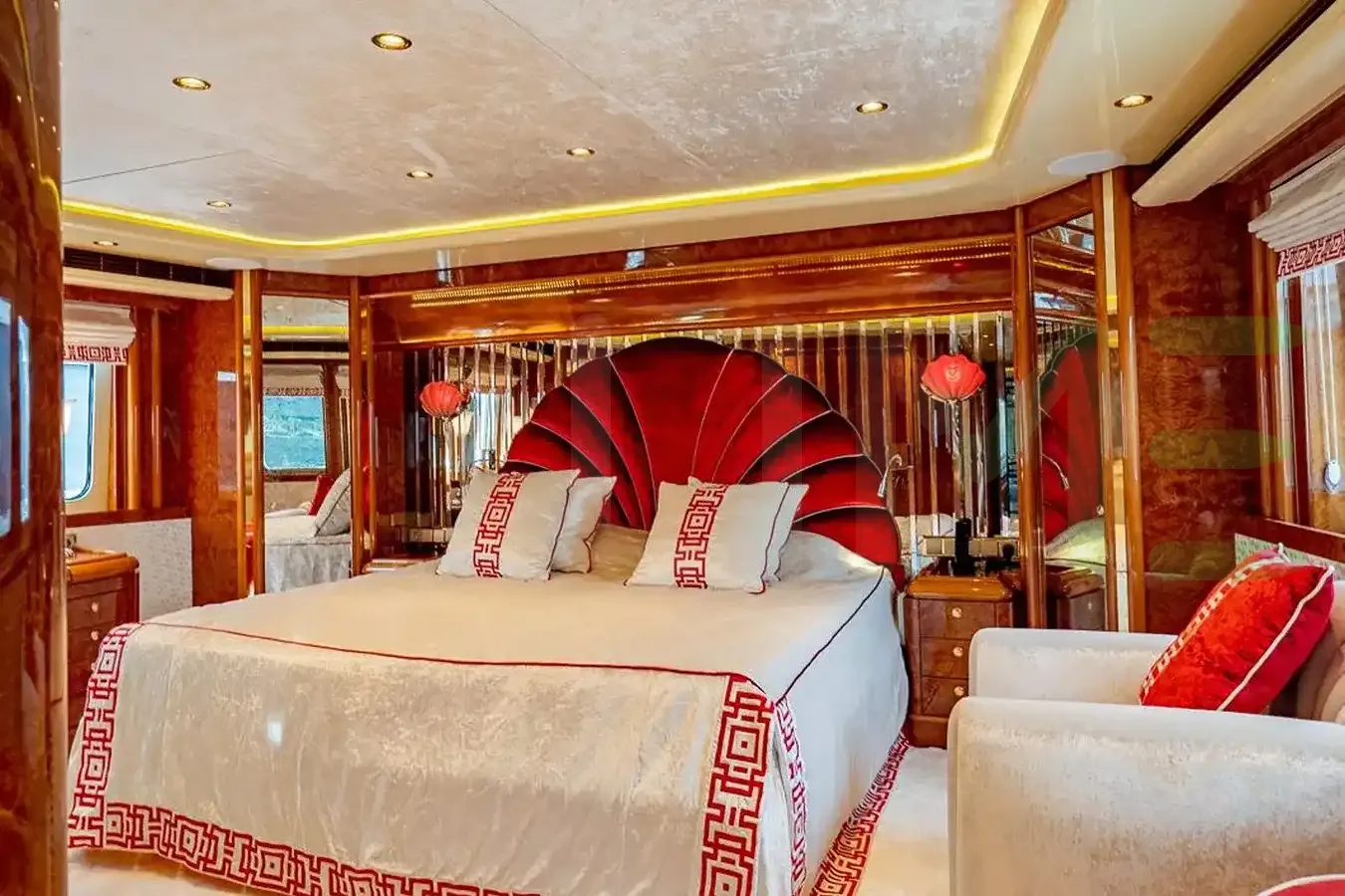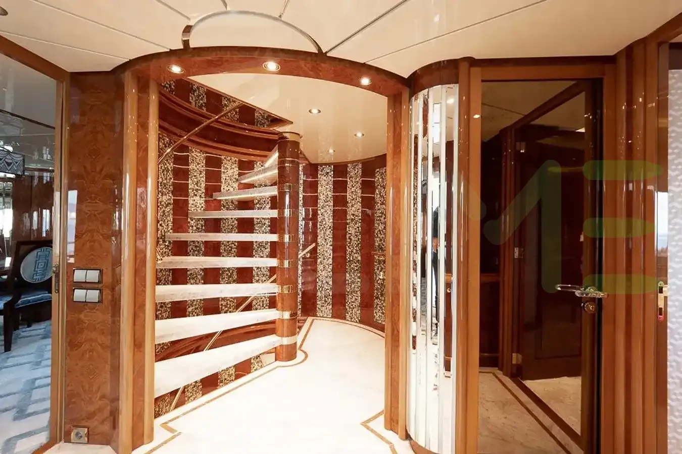 Her features include an elevator, underwater lights, deck jacuzzi, WiFi and air conditioning.