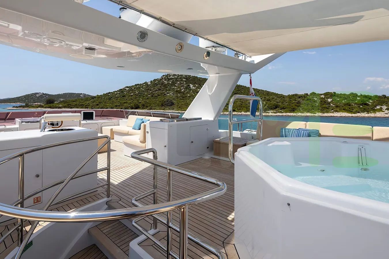 Keeping comfortable and entertained on Ladyship is easy thanks to the available amenities, notably a deck jacuzzi, perfect to enjoy the scenery with your favourite drink in hand.