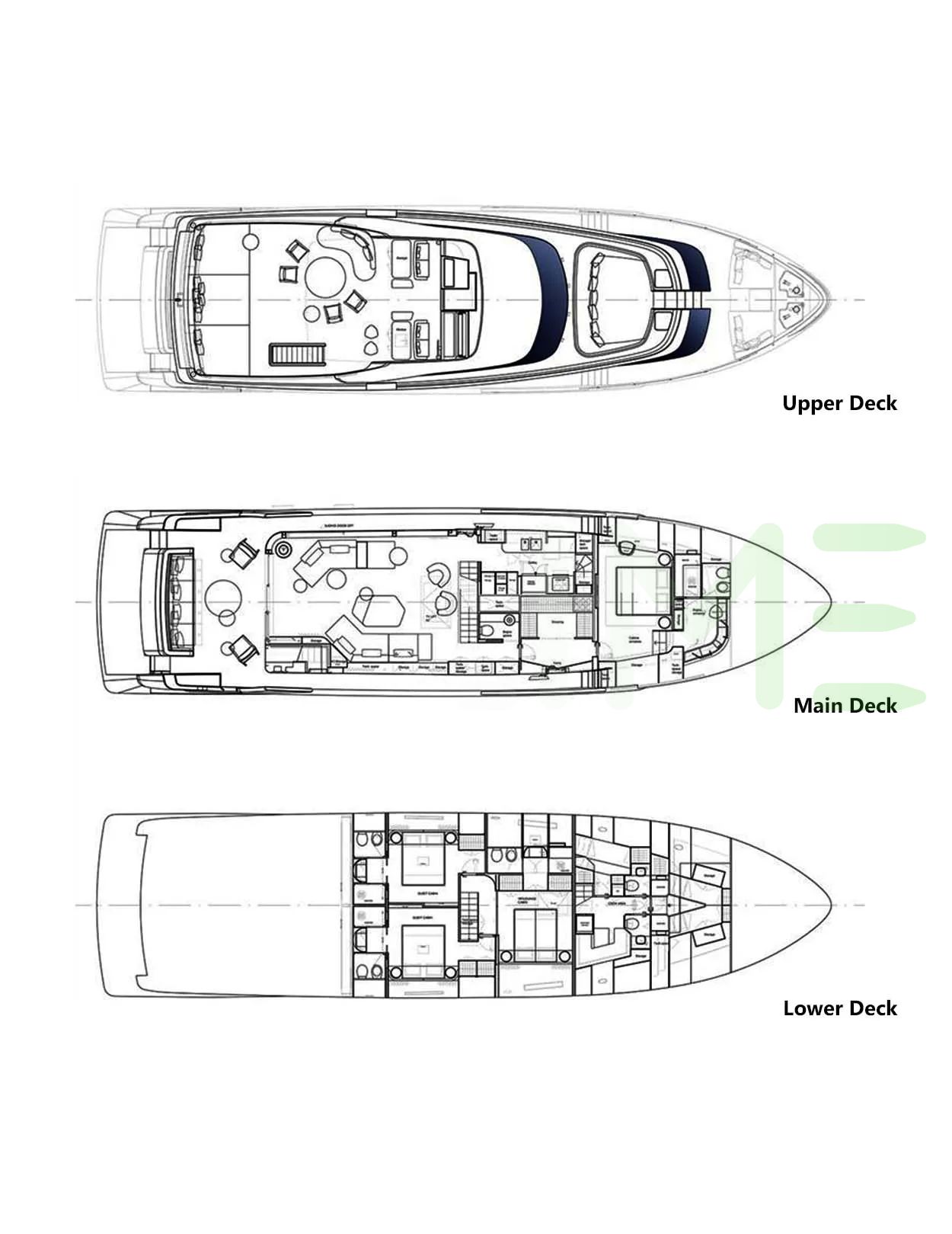 Request plans that include the layout of staterooms, guest areas, and outdoor spaces, as well as crew quarters and work areas.