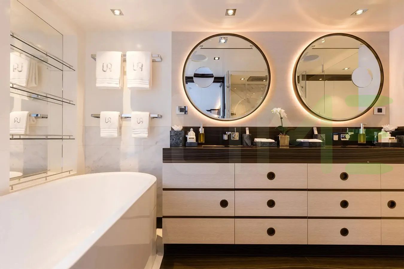 The styling of the LAURENTIA yacht features exterior design by Omega Architects and interior design by RADYCA INC. Up to 12 guests can be accommodated on board the superyacht LAURENTIA in 6 staterooms. LAURENTIA also has accommodations for 13 crew members, including the yacht’s captain.