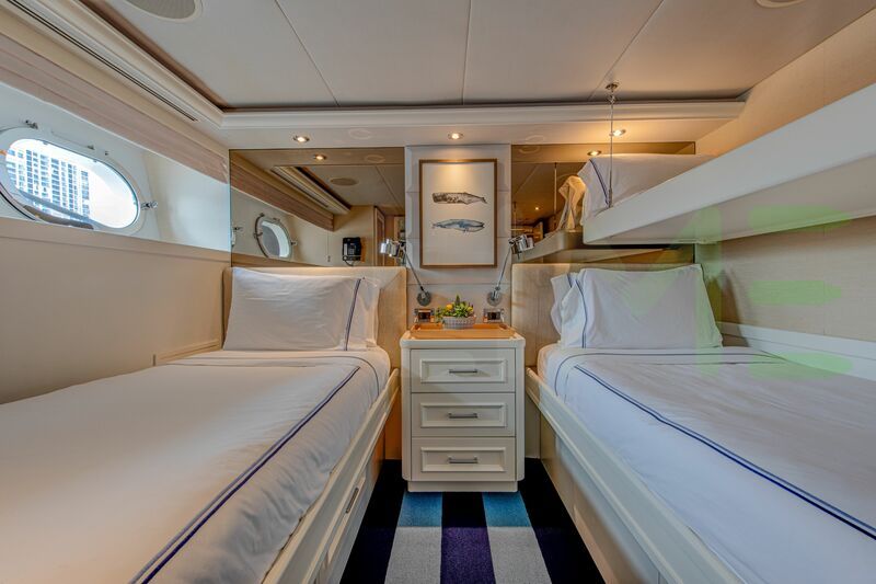 The styling of the LIBERTAS yacht features exterior design by Westport Yachts and interior design by Marty Lowe. Up to 8 guests can be accommodated on board the superyacht LIBERTAS in 4 staterooms. LIBERTAS also has accommodations for 4 crew members, including the yacht’s captain.