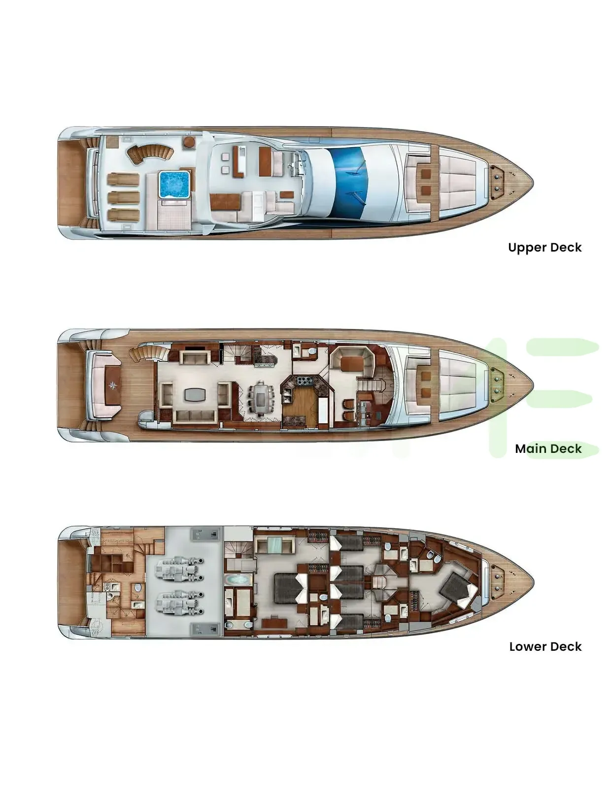 Request plans that include the layout of staterooms, guest areas, and outdoor spaces, as well as crew quarters and work areas.