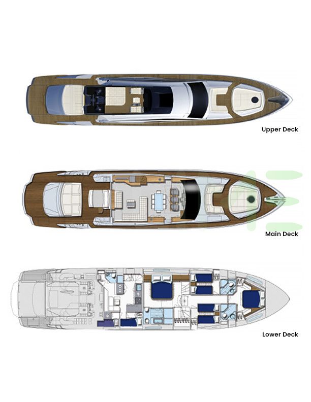 Request plans that include the layout of staterooms, guest areas, and outdoor spaces, as well as crew quarters and work areas.