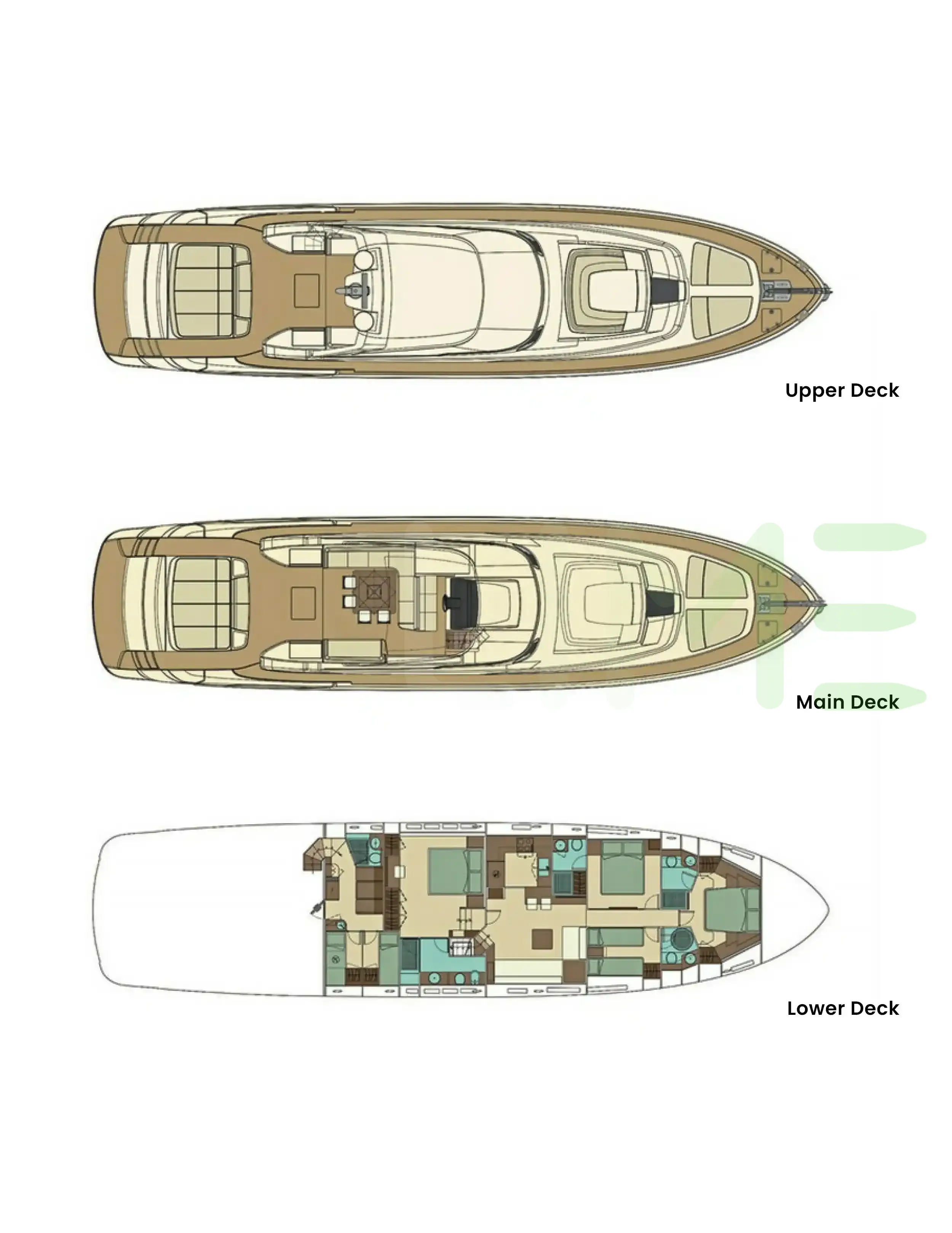 Request plans that include the layout of staterooms, guest areas, and outdoor spaces, as well as crew quarters and work areas.
