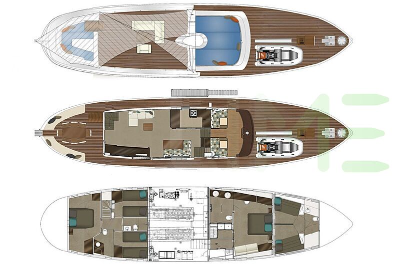 Request plans that include the layout of staterooms, guest areas, and outdoor spaces, as well as crew quarters and work areas.
