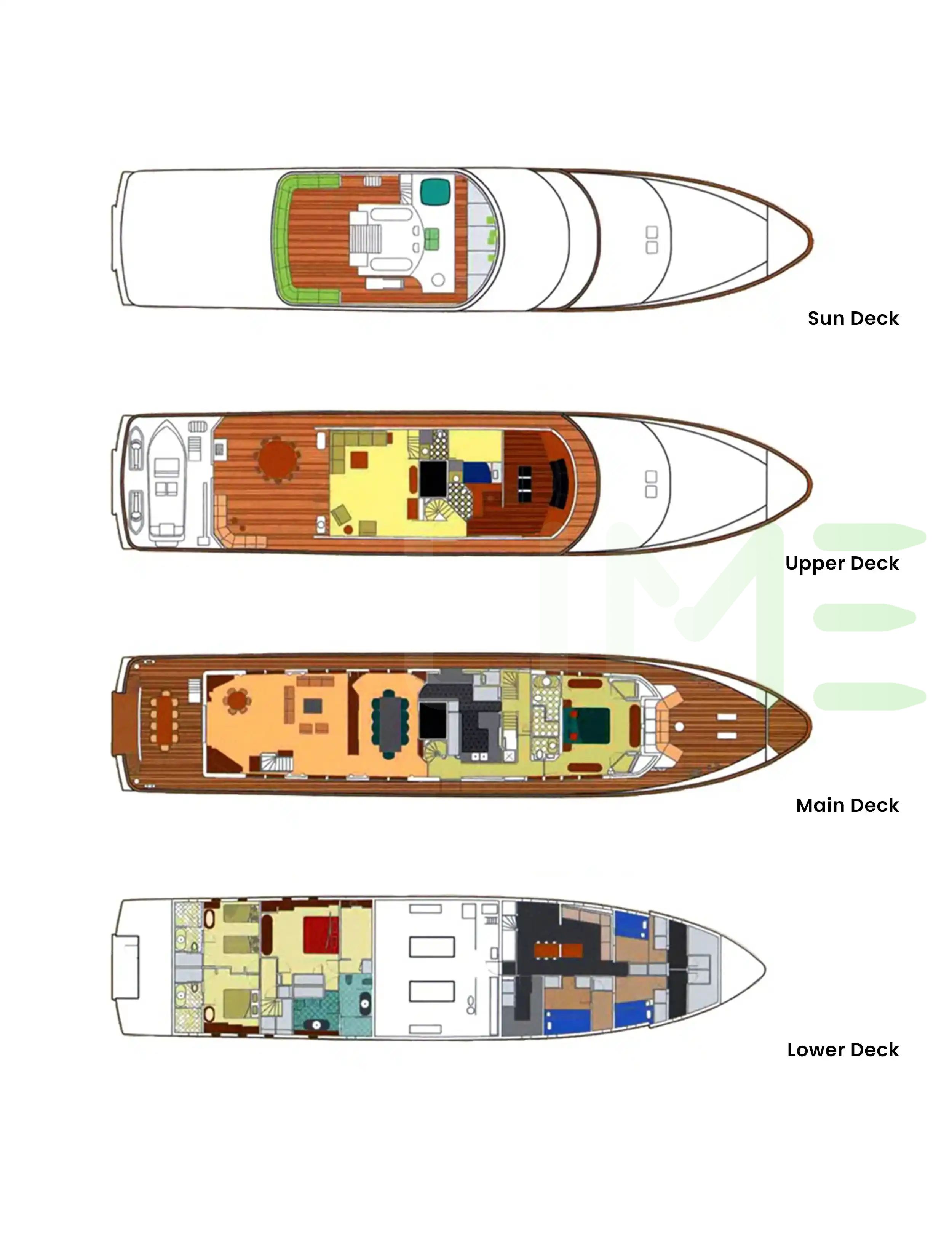 Request plans that include the layout of staterooms, guest areas, and outdoor spaces, as well as crew quarters and work areas.