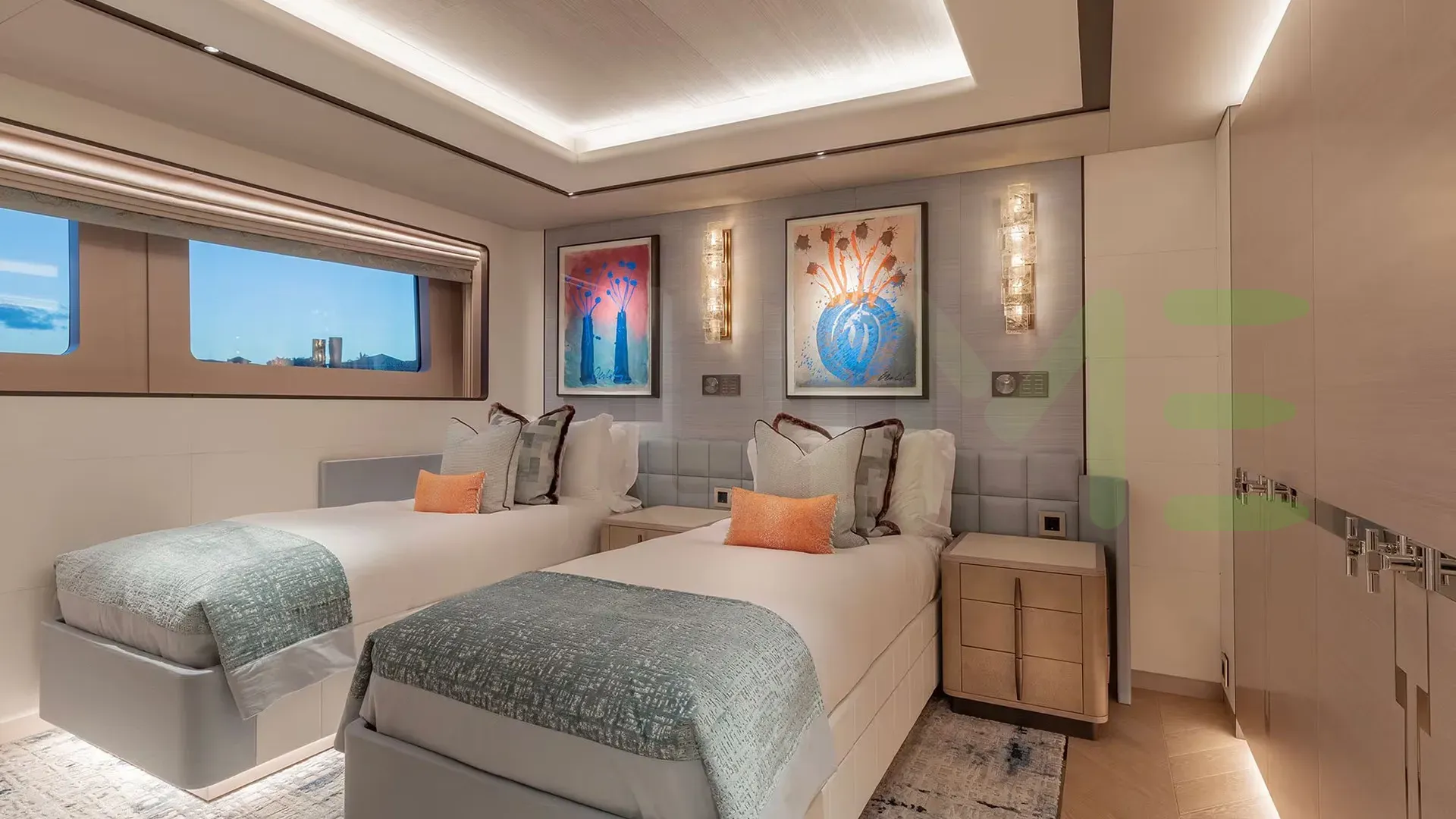 The styling of the MOON SAND yacht features exterior design by Bannenberg & Rowell Design and interior design by Bannenberg & Rowell Design. Up to 10 guests can be accommodated on board the superyacht MOON SAND in 5 staterooms. MOON SAND also has accommodations for 15 crew members, including the yacht’s captain.