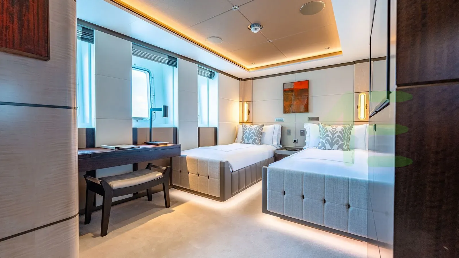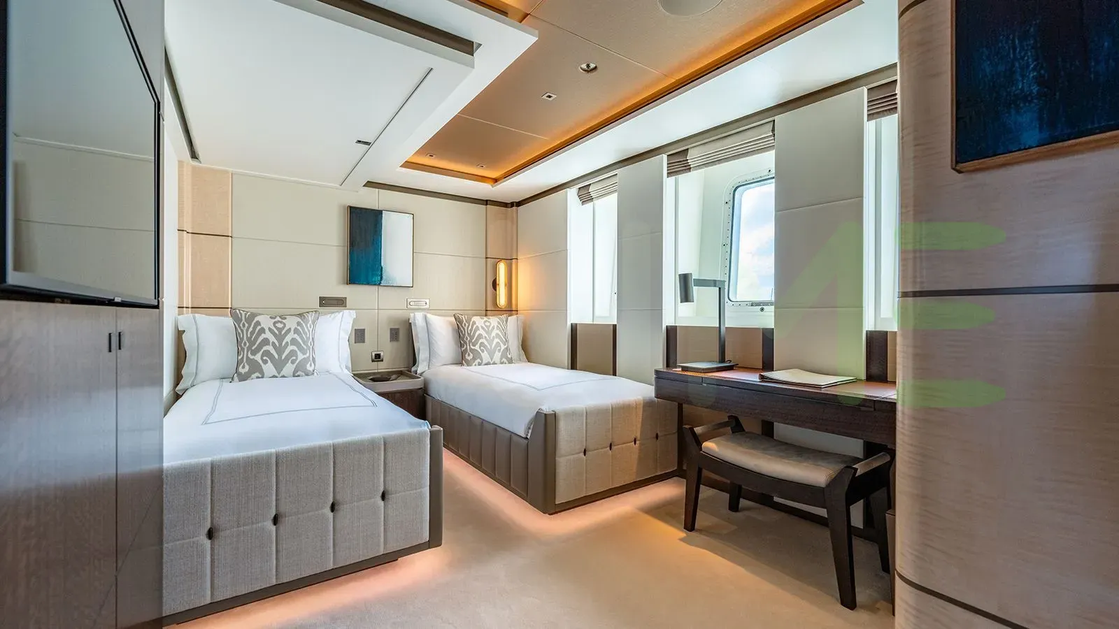 The styling of the MOSKITO yacht features exterior design by Omega Architects and interior design by Bannenberg & Rowell Design. Up to 12 guests can be accommodated on board the superyacht MOSKITO in 6 staterooms. MOSKITO also has accommodations for 13 crew members, including the yacht’s captain.