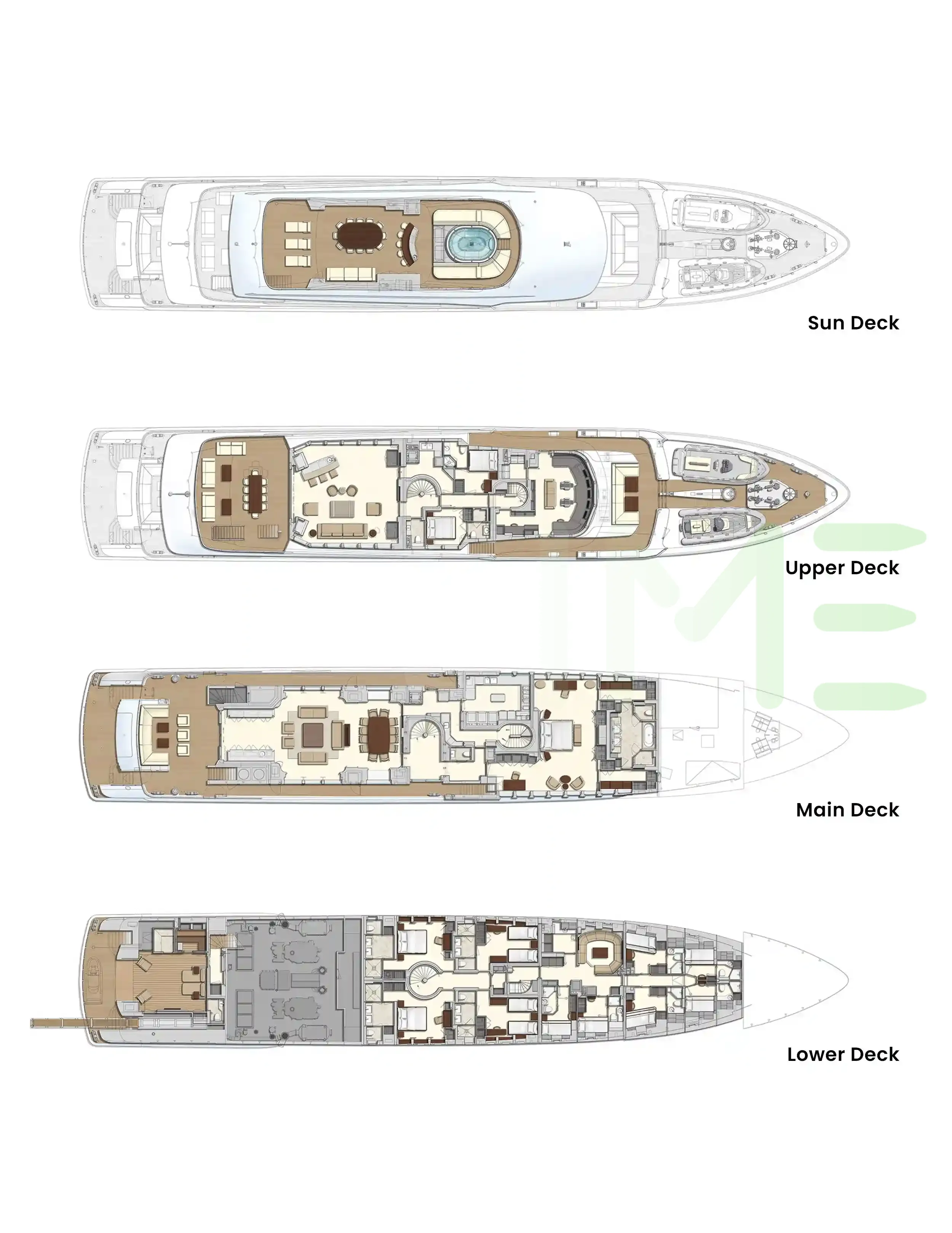 Request plans that include the layout of staterooms, guest areas, and outdoor spaces, as well as crew quarters and work areas.