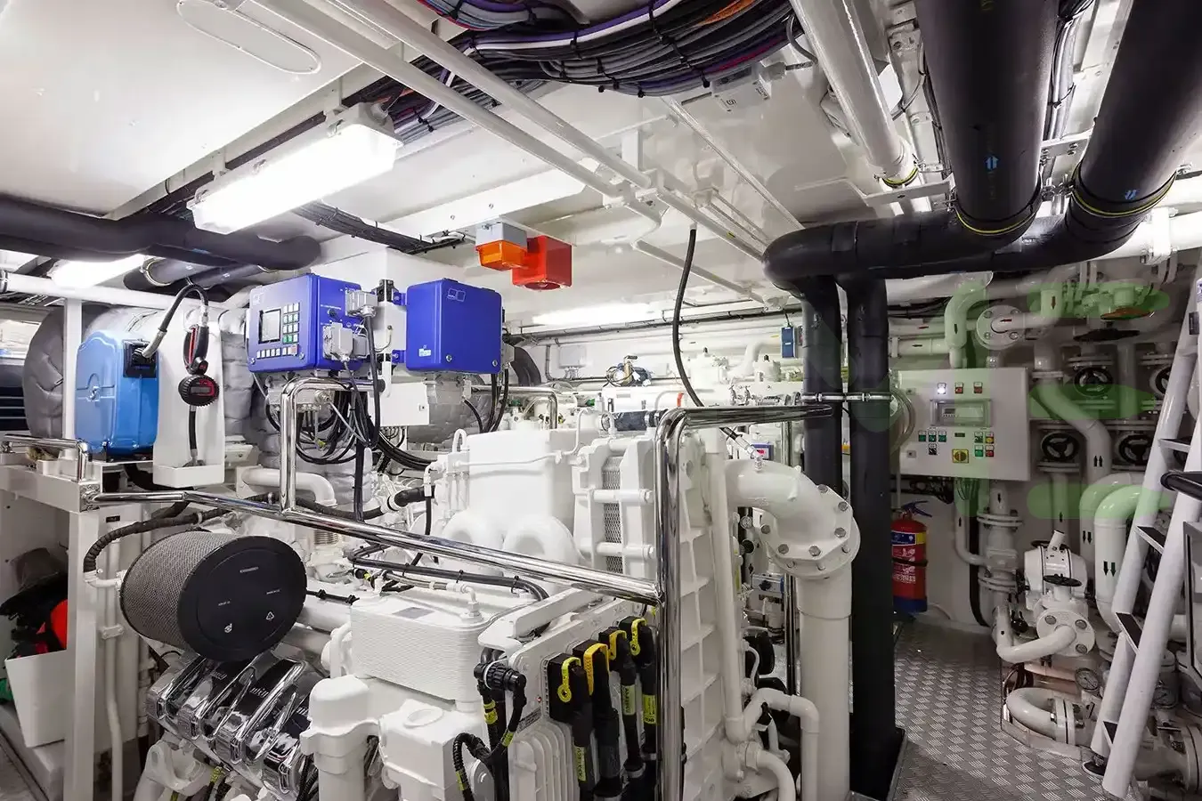 Powered by two MTU main engines, each generating 1,000 horsepower, for a total combined output of 2,000 horsepower. Notably, the MOUNA yacht is one of 4,396 yachts greater than 65’(19m) with MTU engines.
