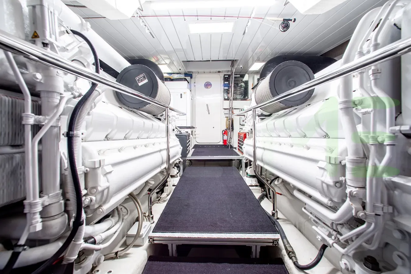 Powered by two MTU main engines, each generating 1,342 horsepower, for a total combined output of 2,684 horsepower. Notably, the MOVIN DAY yacht is one of 4,366 yachts greater than 65’(19m) with MTU engines.