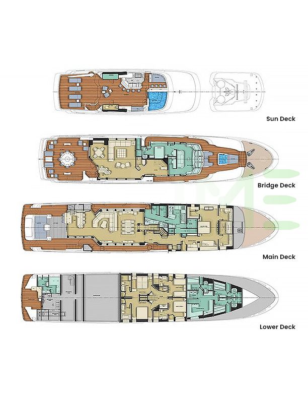 Request plans that include the layout of staterooms, guest areas, and outdoor spaces, as well as crew quarters and work areas.