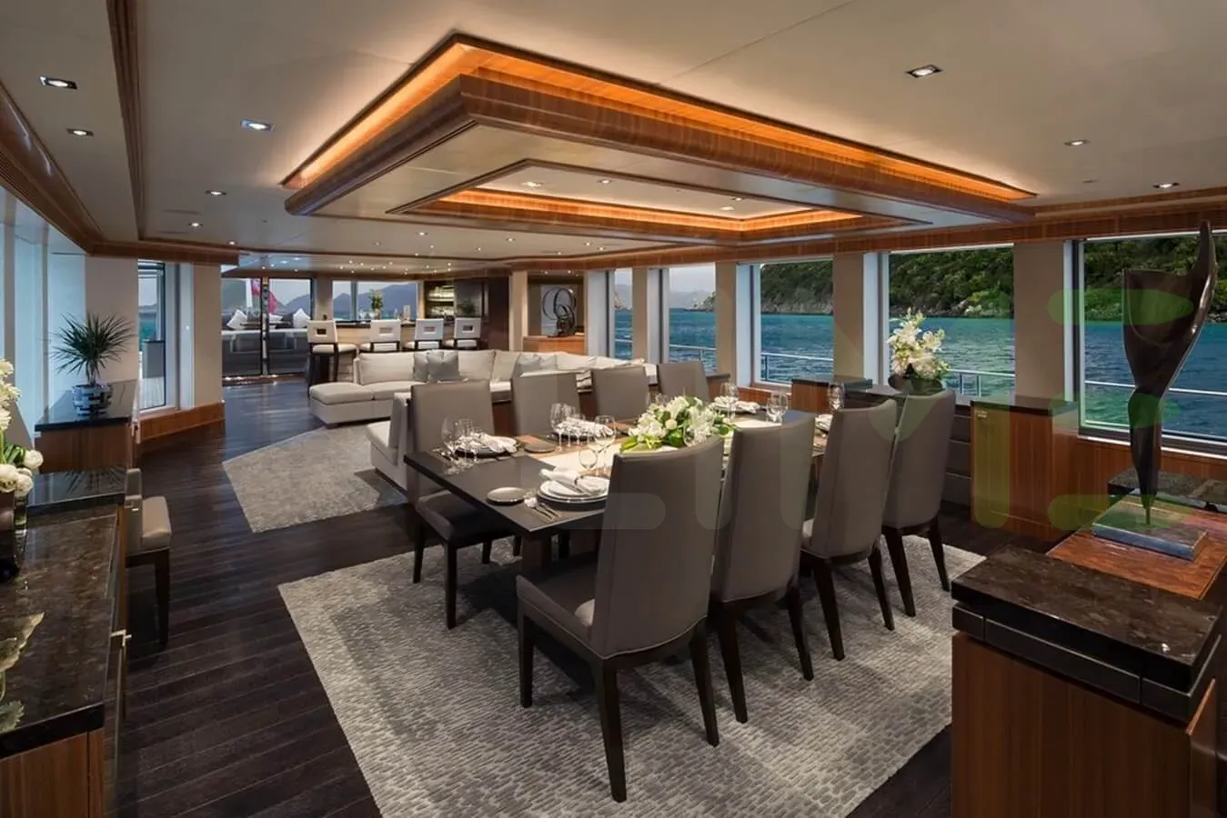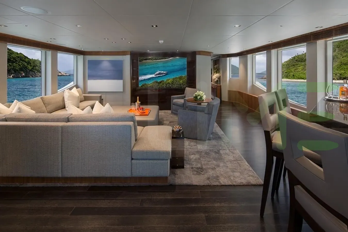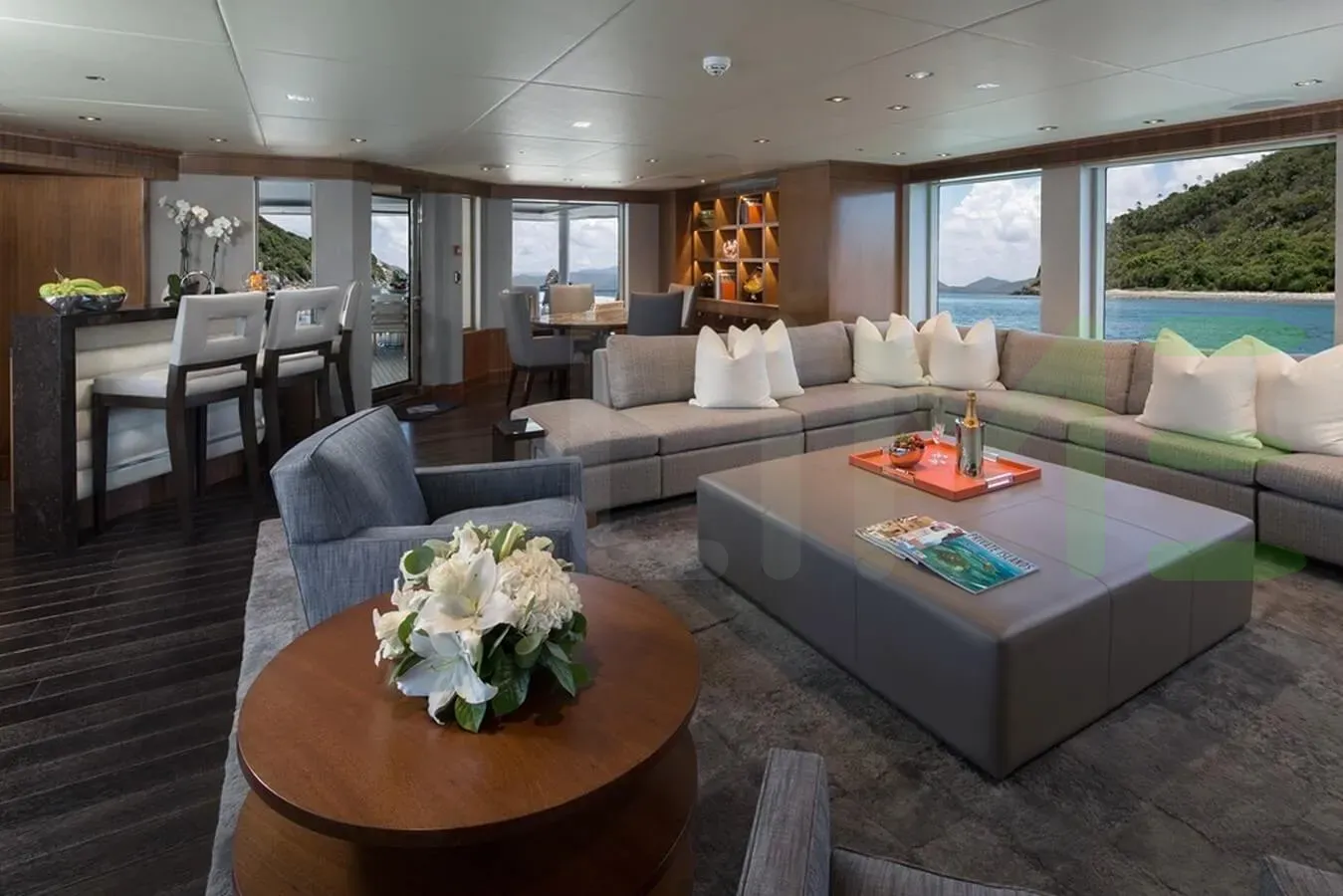 The styling of the MUCHOS MAS yacht features exterior design by Jonathan Quinn Barnett Ltd and interior design by Jonathan Quinn Barnett Ltd. Up to 11 guests can be accommodated on board the superyacht MUCHOS MAS in 5 staterooms. MUCHOS MAS also has accommodations for 9 crew members, including the yacht’s captain.