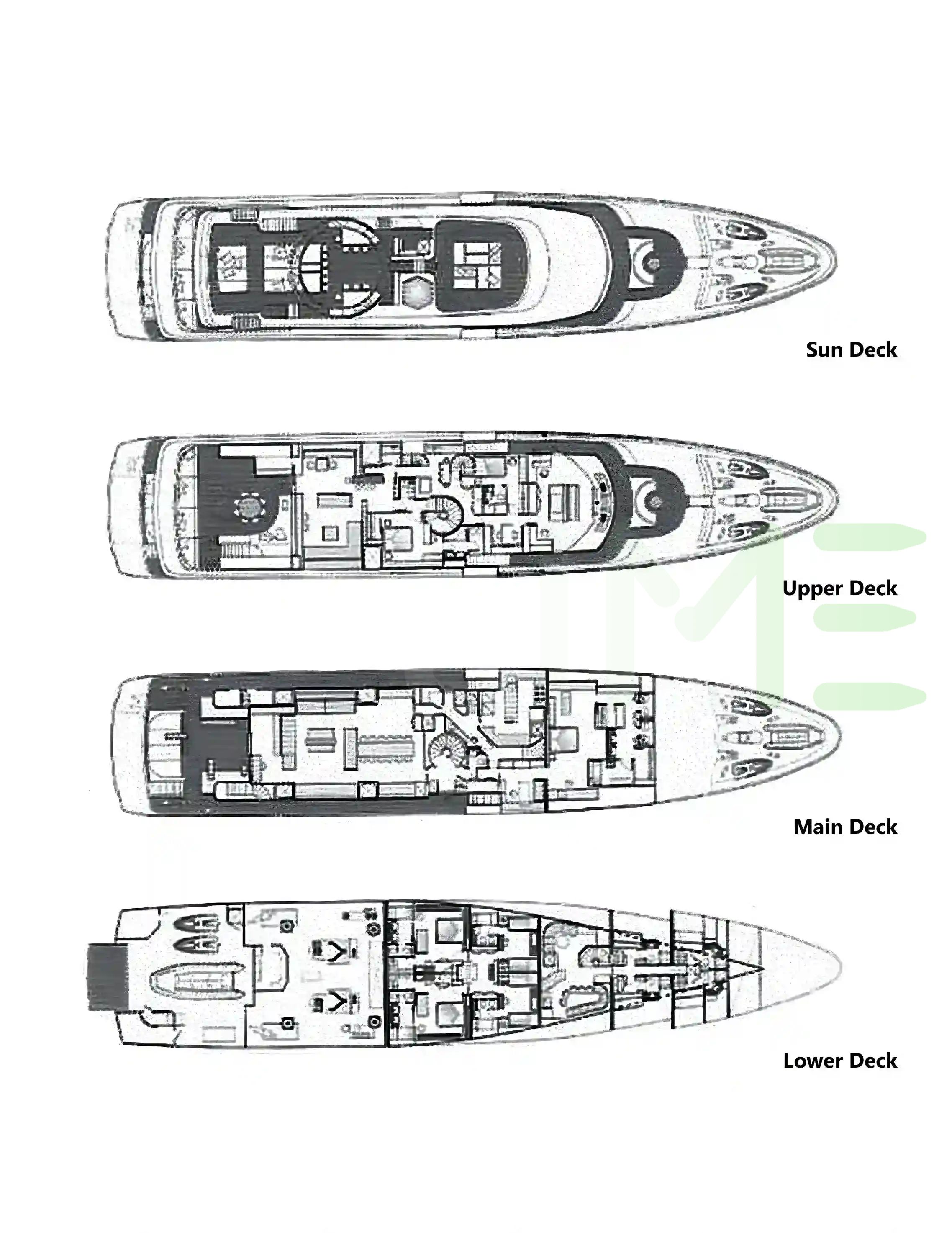 Request plans that include the layout of staterooms, guest areas, and outdoor spaces, as well as crew quarters and work areas.