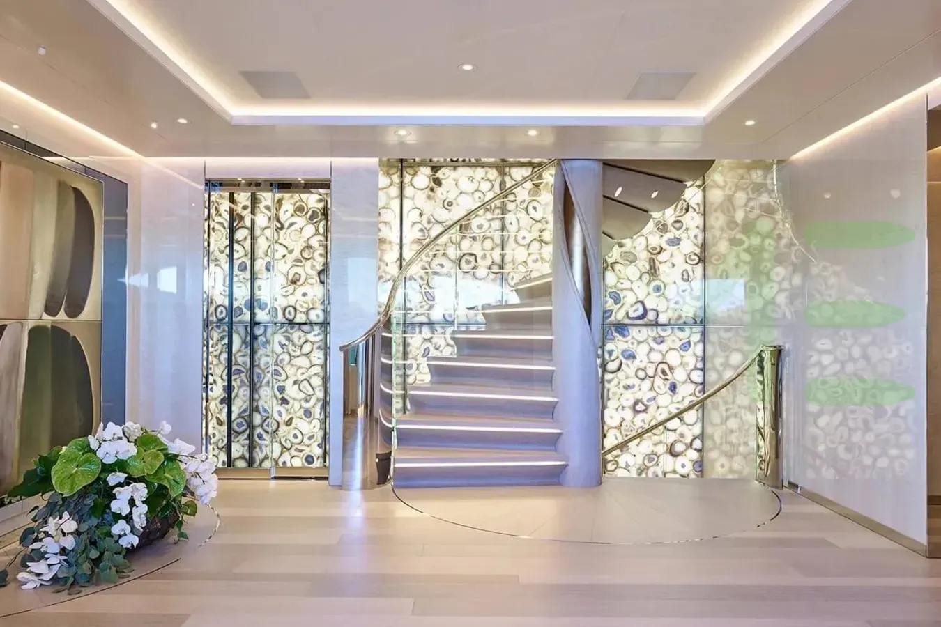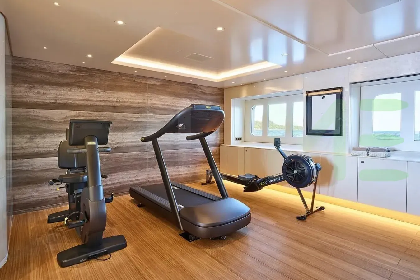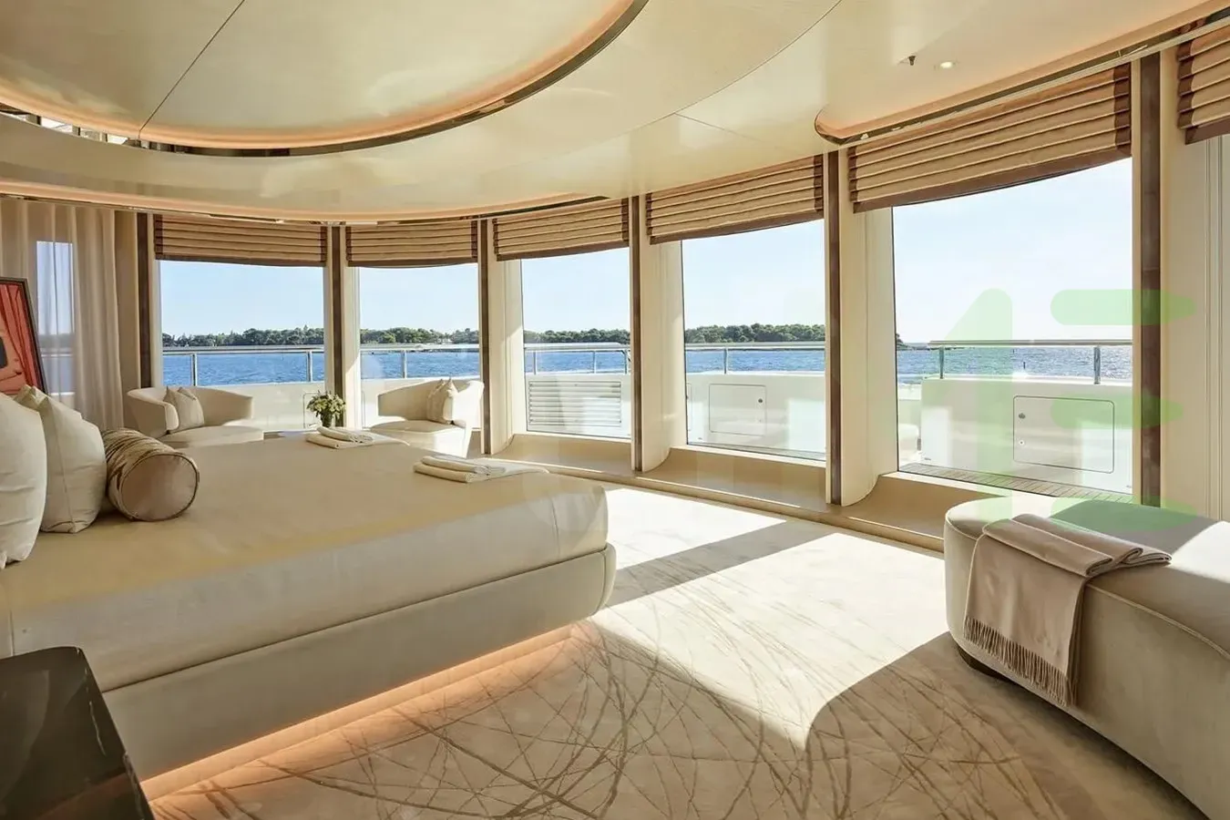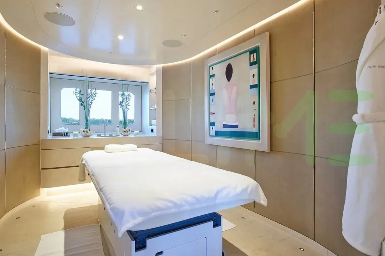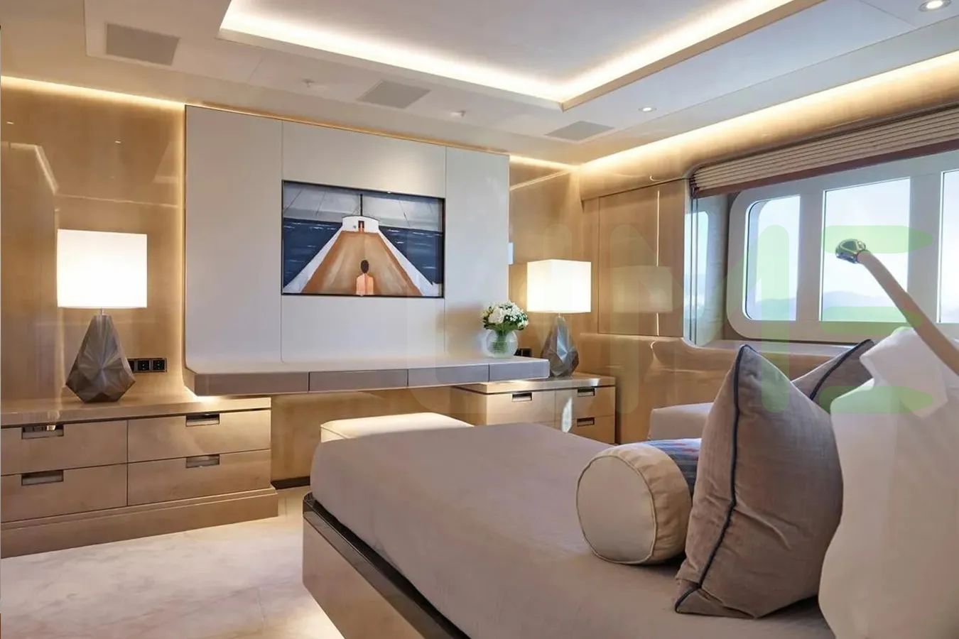 Her features include a spa, beauty salon, elevator, underwater lights, beach club, gym, deck jacuzzi, WiFi and air conditioning.