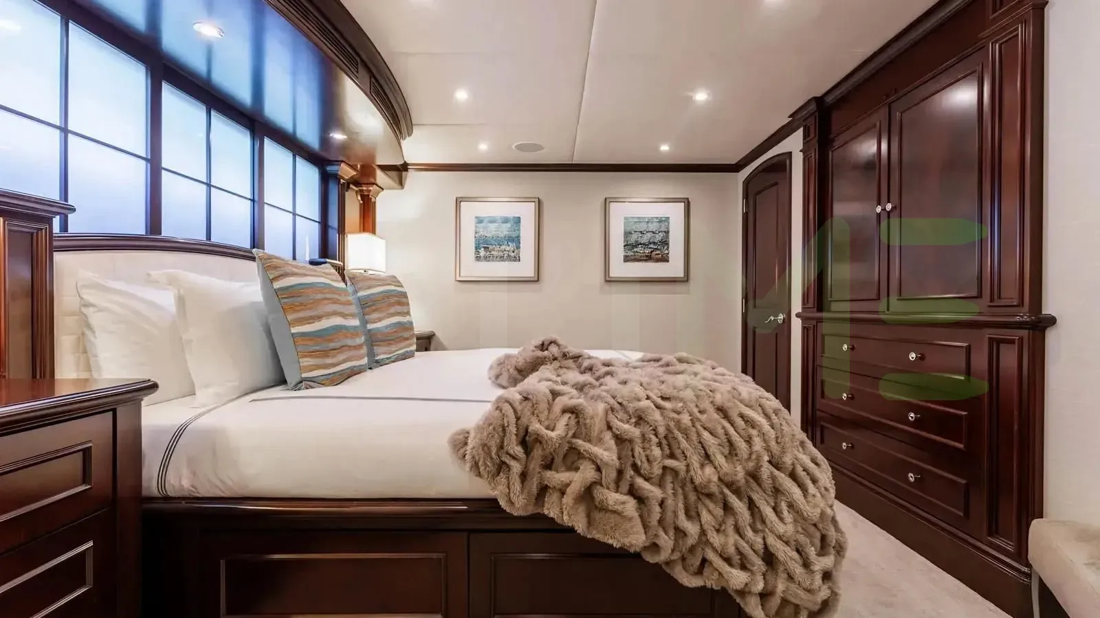 Measuring in at a length of 157' 6" (48.01m) and boasting a beam of 27' 11" (8.5m), NICOLE EVELYN's grandeur is matched only by her spaciousness. Her draft of 7' 1" (2.15m) allows for an interior volume of 465 GRT (gross registered tons) which contributes to her exceptional performance on the open ocean.
