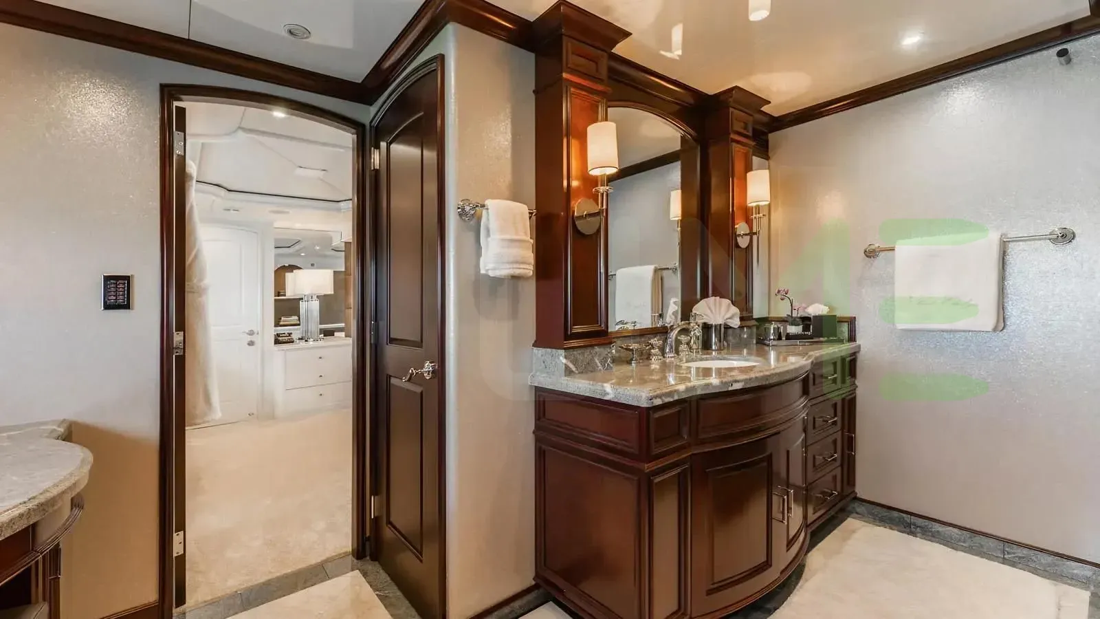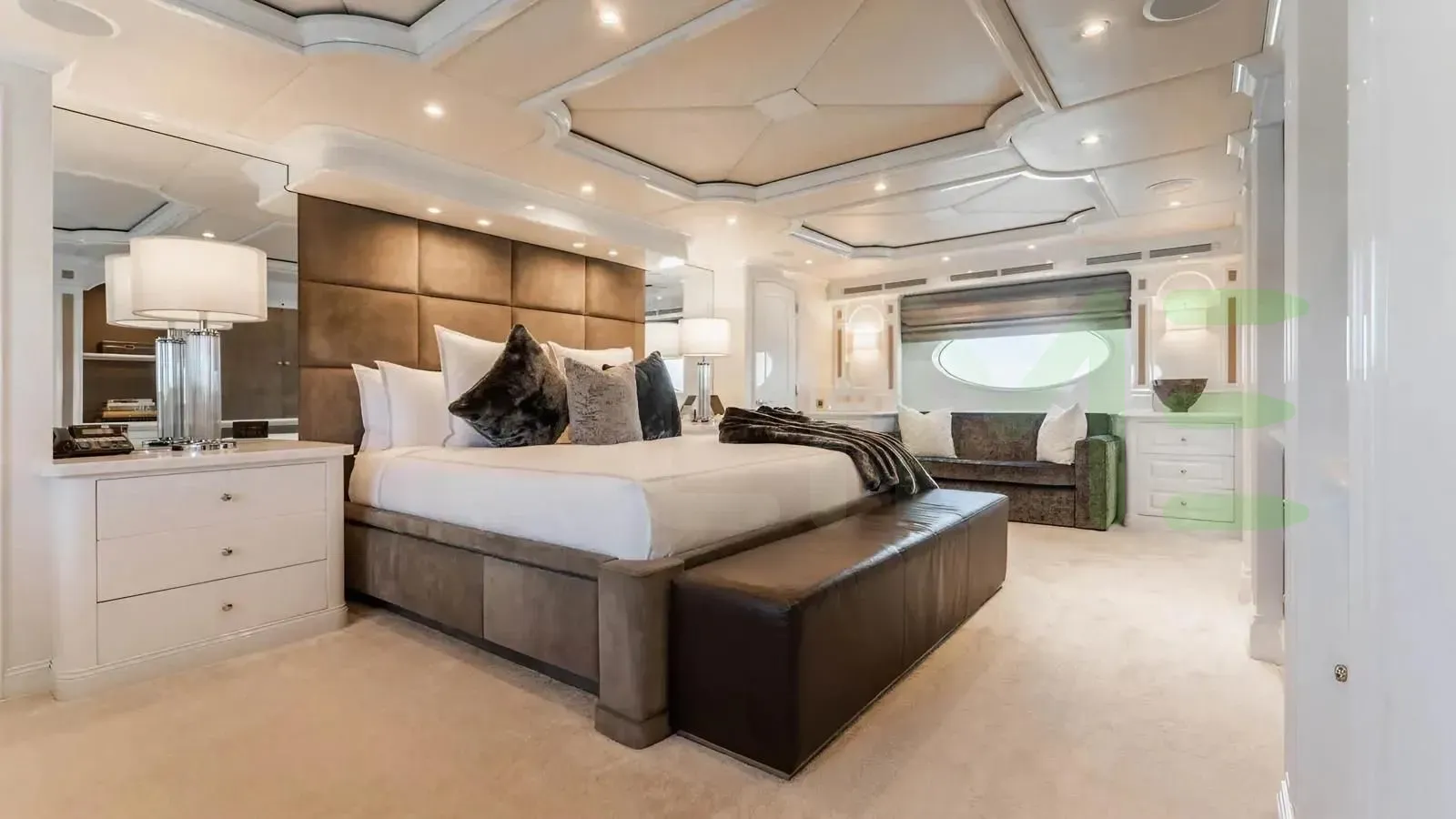 The styling of the NICOLE EVELYN yacht features exterior design by Trinity Yachts and interior design by Dee Robinson Interiors, Bonville Associates, Patrick Knowles Designs. Up to 10 guests can be accommodated on board the superyacht NICOLE EVELYN in 5 staterooms. NICOLE EVELYN also has accommodations for 9 crew members, including the yacht’s captain.