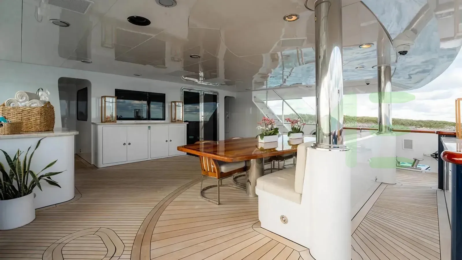 Constructed with a Aluminium hull, and Aluminium superstructure, she offers ample exterior and interior space.