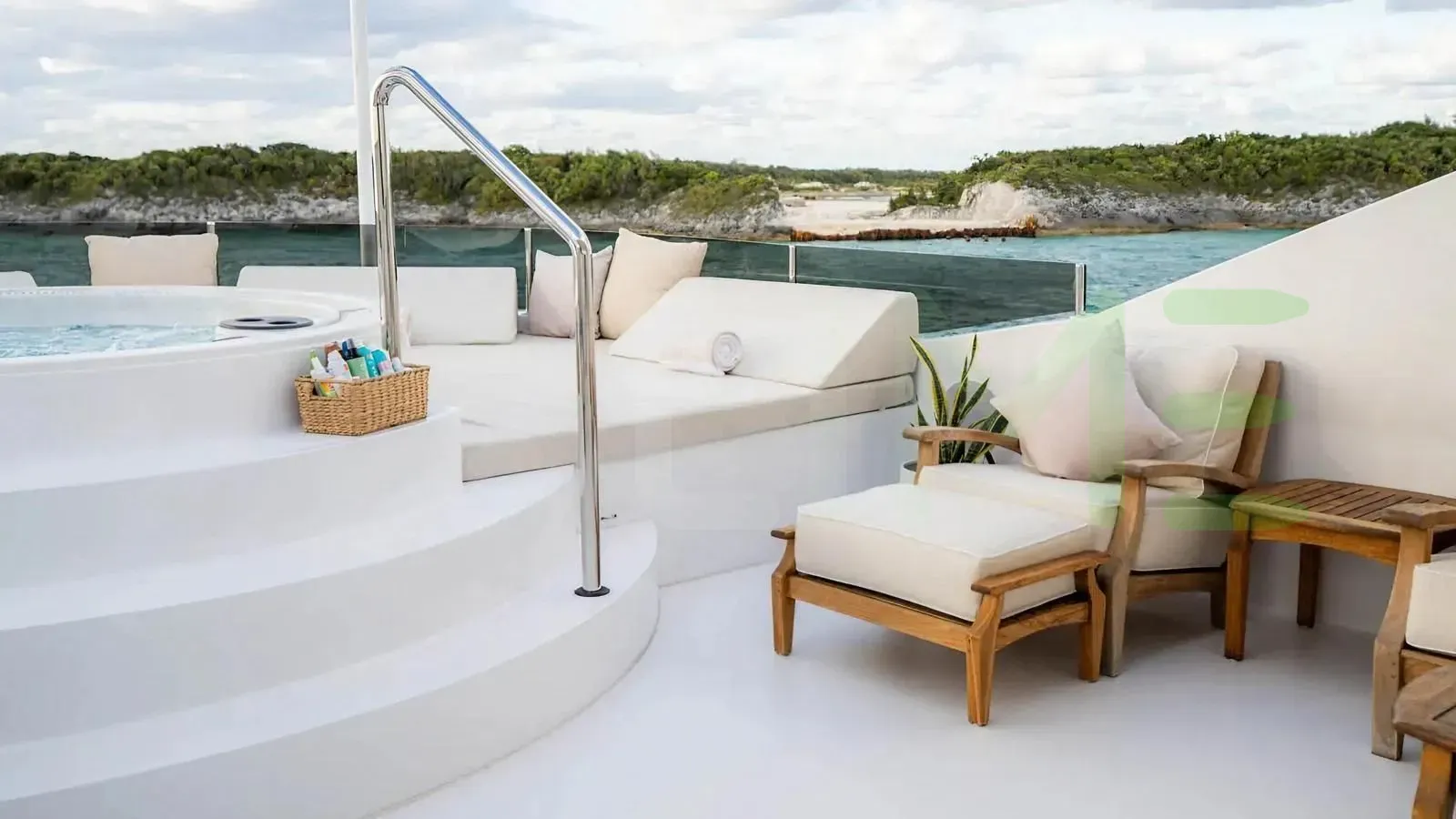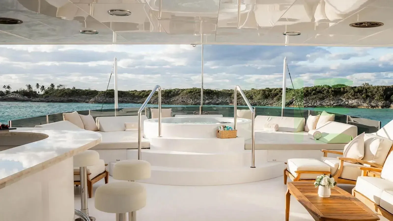 Keeping comfortable and entertained on Nicole Evelyn is easy thanks to the available amenities, notably a gym with all the latest equipment to maintain your fitness routine. Retreat to the deck jacuzzi and soak up the scenery.