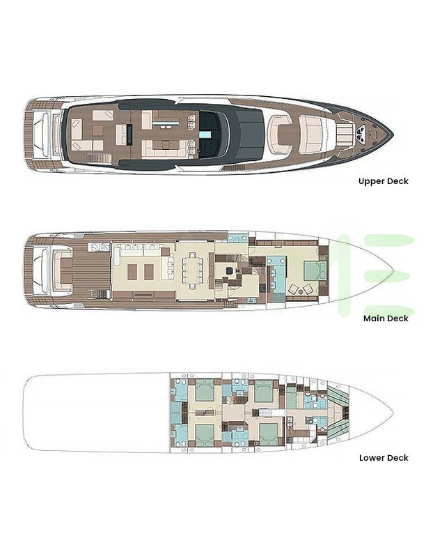 Request plans that include the layout of staterooms, guest areas, and outdoor spaces, as well as crew quarters and work areas.
