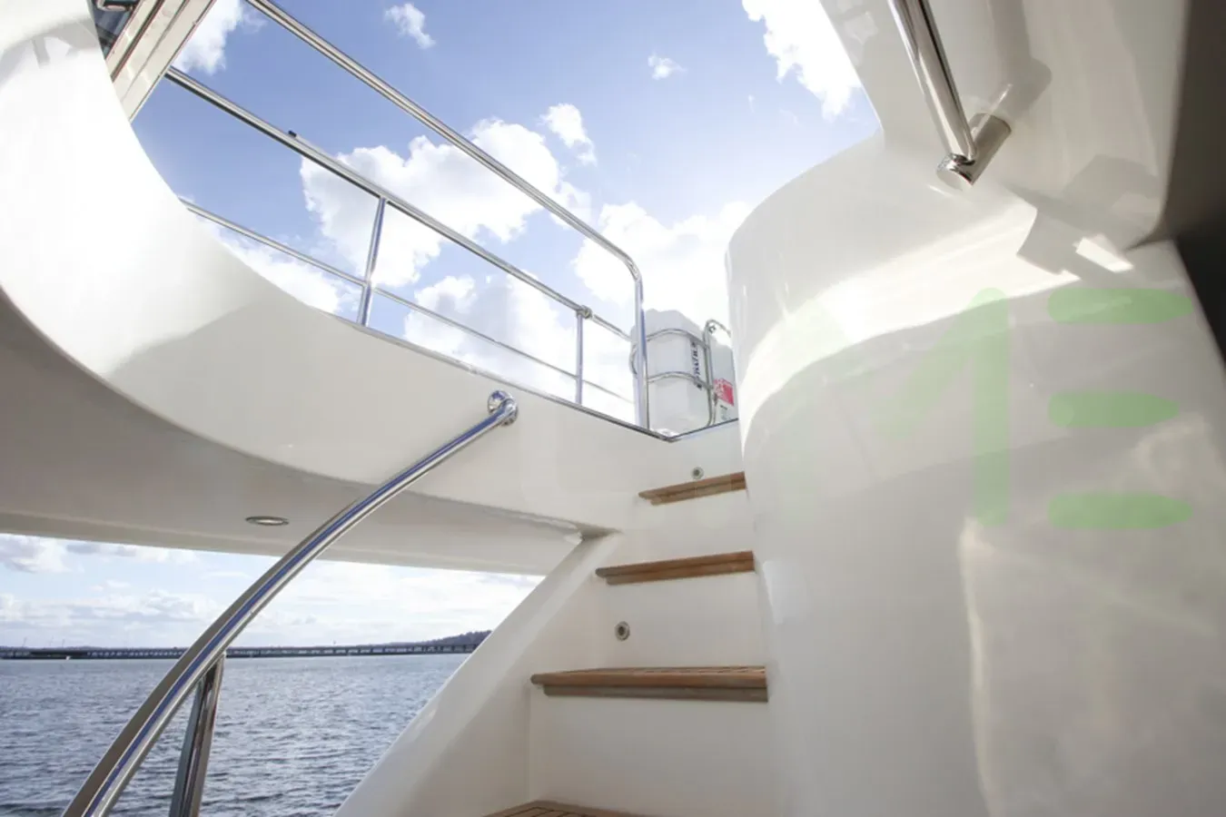 Constructed with a GRP hull, and GRP superstructure, she offers ample exterior and interior space.