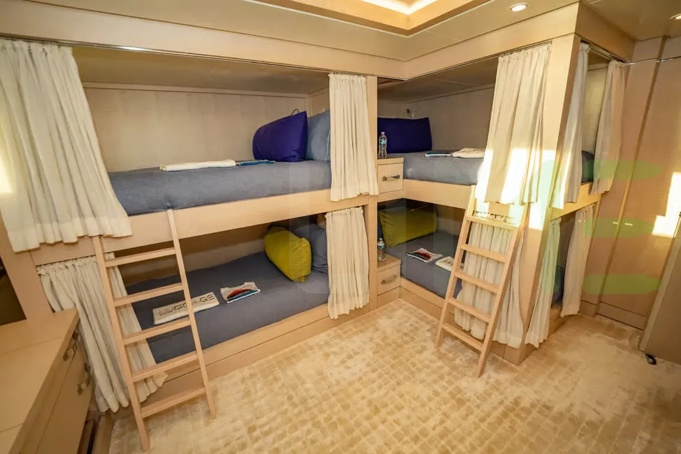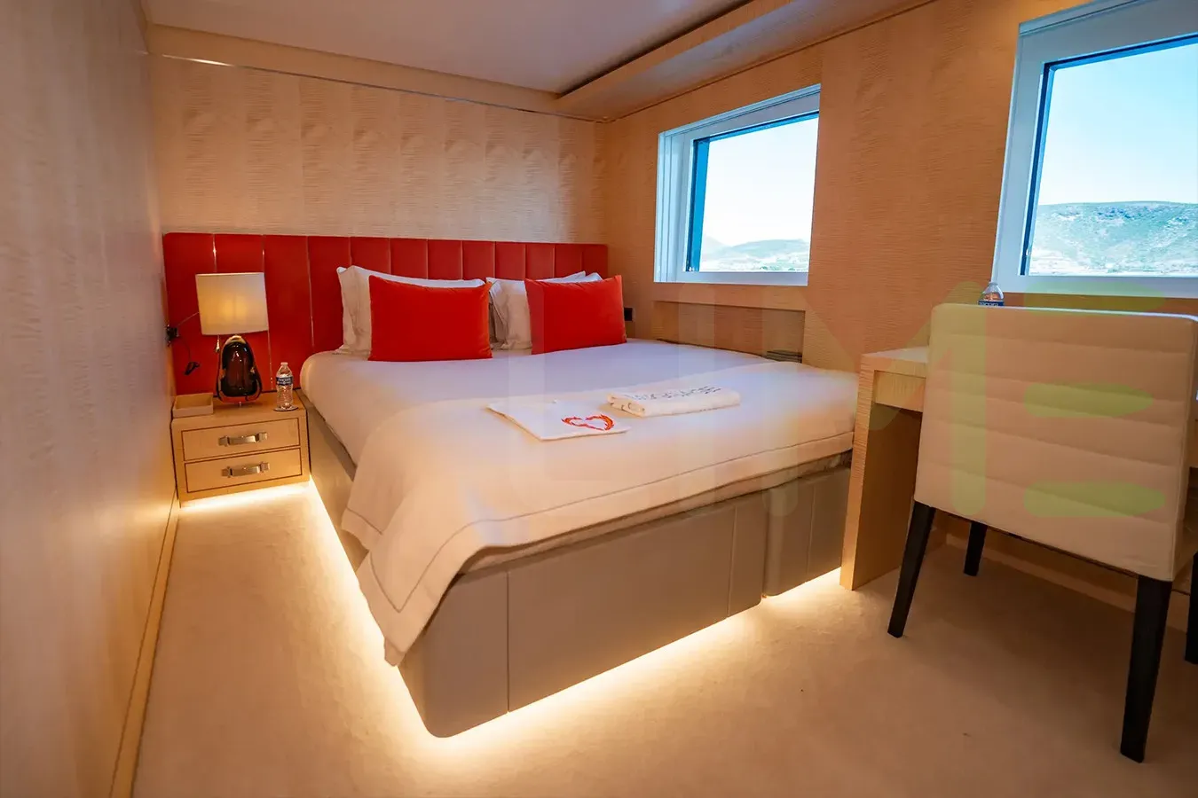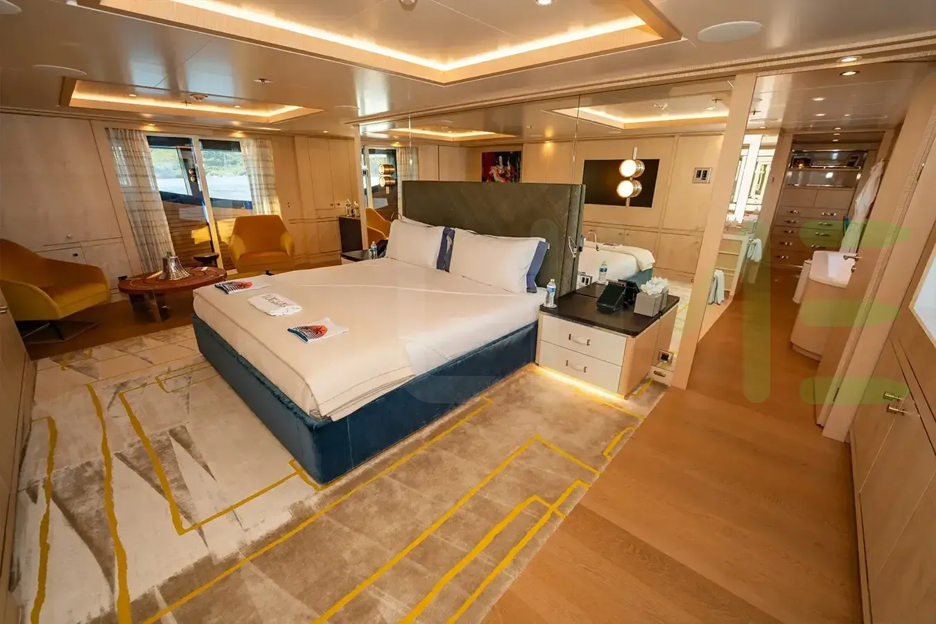 - Full-beam master cabin with dressing room and study