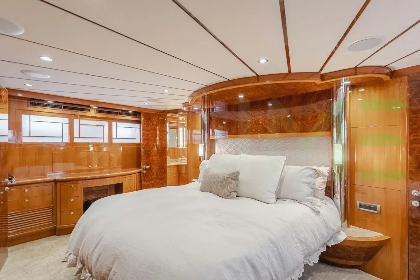 Measuring in at a length of 84' (25.6m) and boasting a beam of 20' (6.1m), OBSESSION's grandeur is matched only by her spaciousness. Her draft of 5' (1.52m) allows for an interior volume of 108 GRT (gross registered tons) which contributes to her exceptional performance on the open ocean.