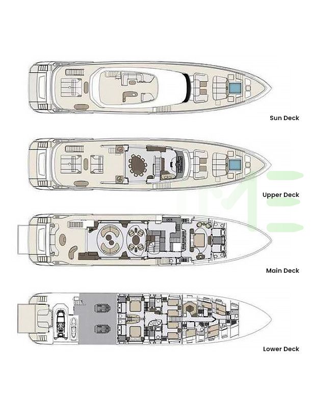 Request plans that include the layout of staterooms, guest areas, and outdoor spaces, as well as crew quarters and work areas.