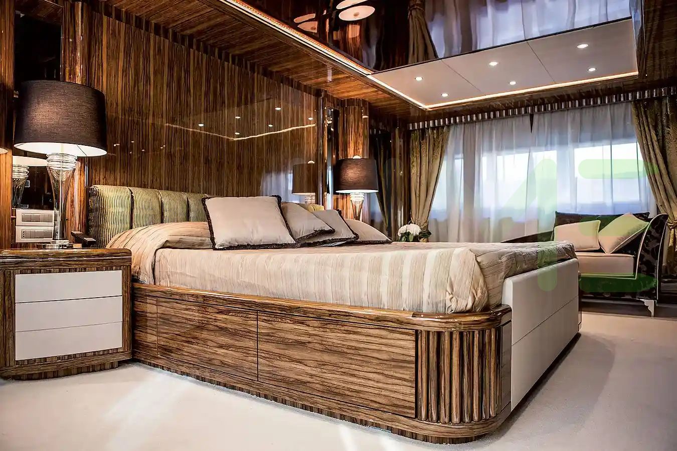 - Luxe interior of soft fraké wood and muted colours