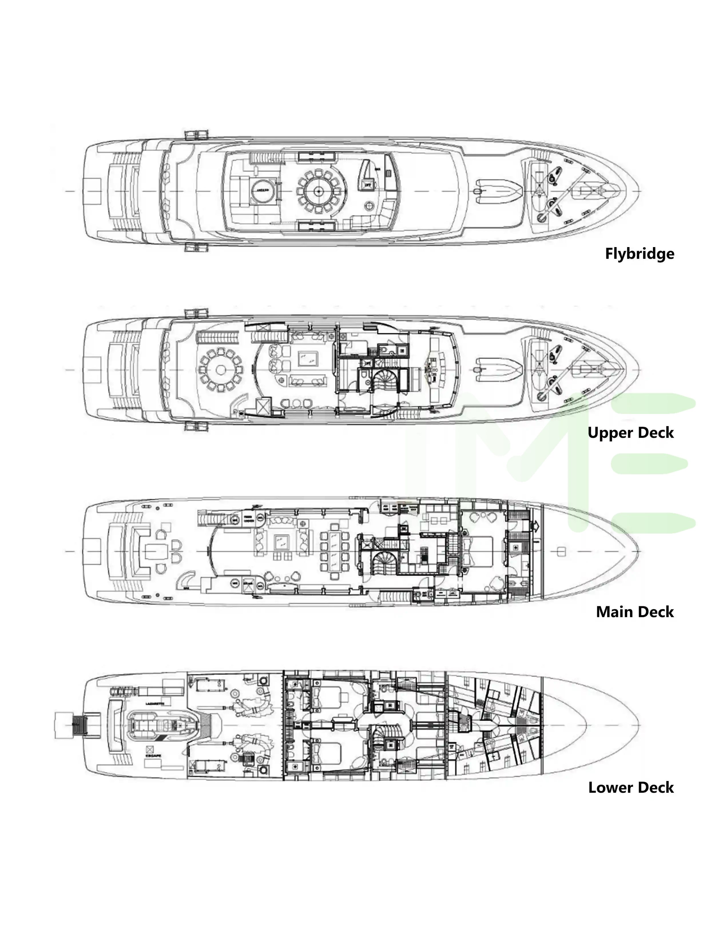 Request plans that include the layout of staterooms, guest areas, and outdoor spaces, as well as crew quarters and work areas.