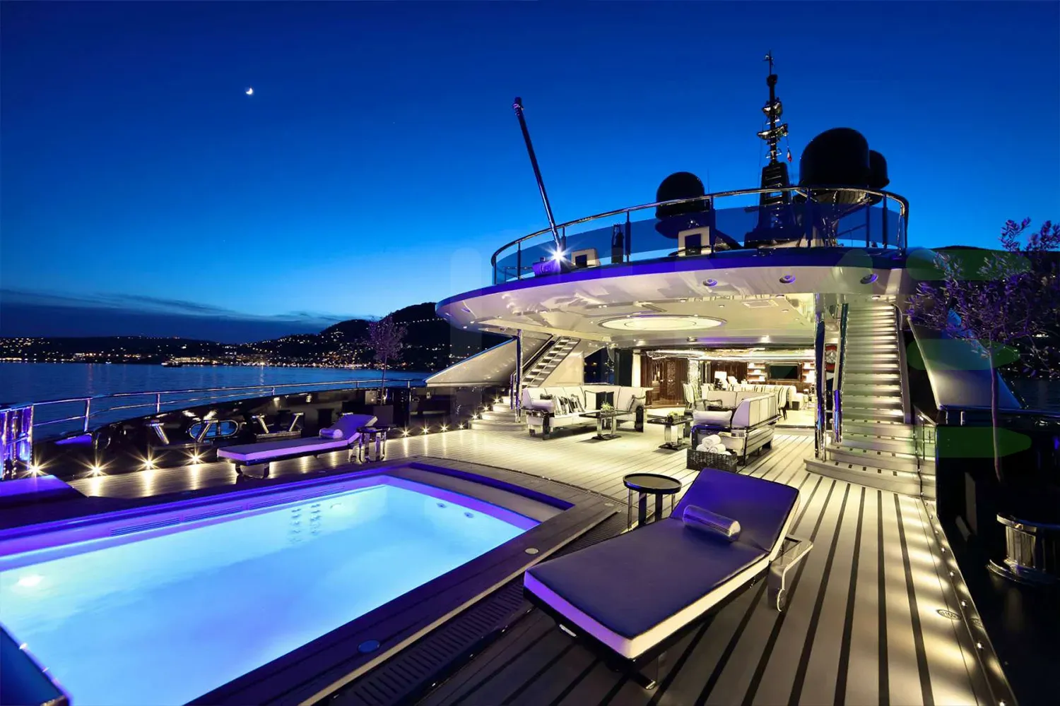 To respect the privacy of the OKTO yacht owner and guests, the OKTO yacht location is privately available to prospective clients only. For details about the current location, winter and summer cruising regions, and the availability of the OKTO yacht for charter, along with additional insider information about alternative yachts similar to OKTO, contact a LIME yacht charter broker for a full yacht analysis.