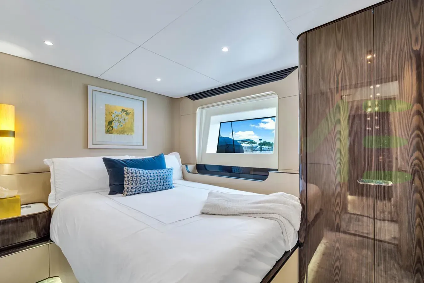 Her features include underwater lights, beach club, WiFi and air conditioning.