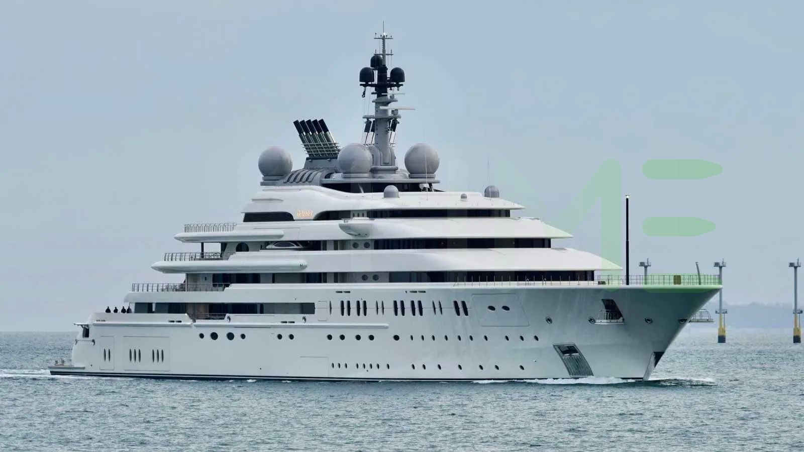 Her features include separate crew passageway, steam room, spa, beauty salon, satellite communications, underwater lights, beach club, gym, WiFi and air conditioning.