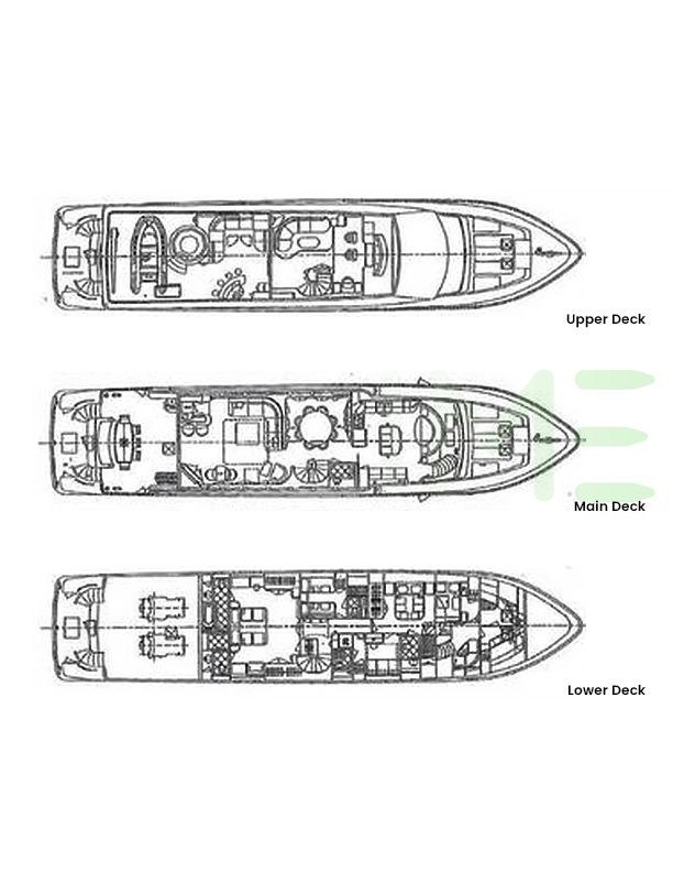 Request plans that include the layout of staterooms, guest areas, and outdoor spaces, as well as crew quarters and work areas.