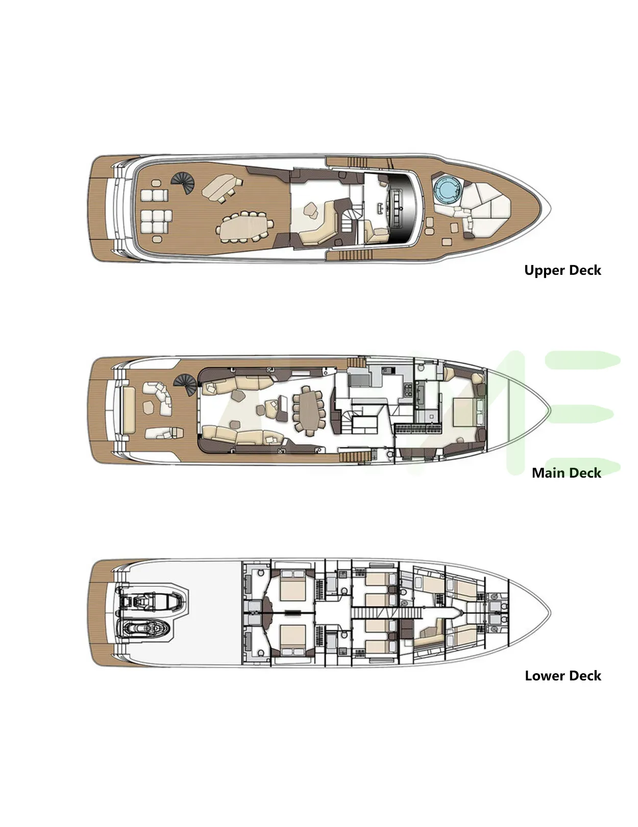 Request plans that include the layout of staterooms, guest areas, and outdoor spaces, as well as crew quarters and work areas.