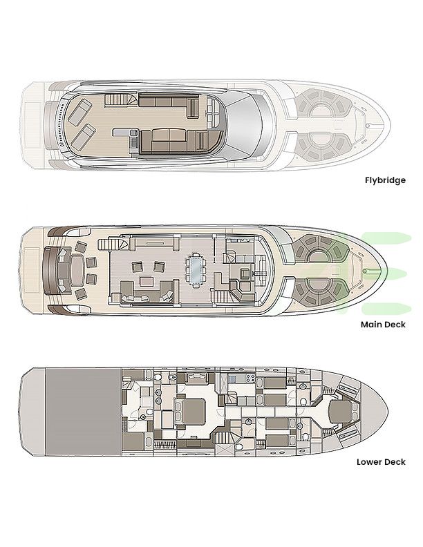 Request plans that include the layout of staterooms, guest areas, and outdoor spaces, as well as crew quarters and work areas.