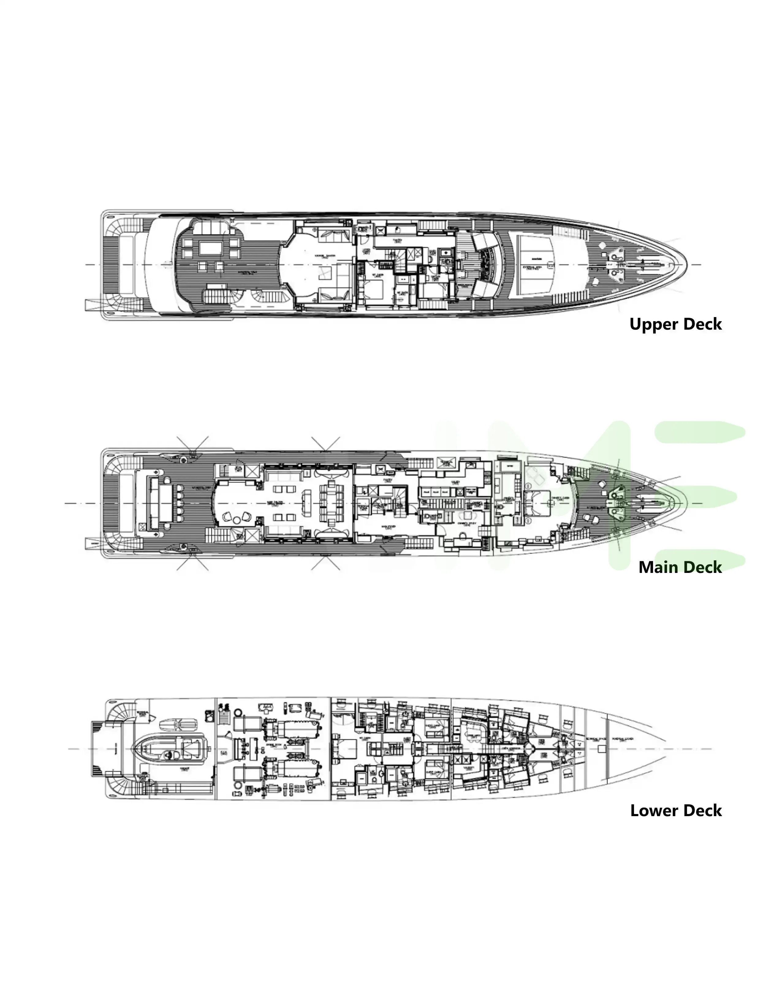 Request plans that include the layout of staterooms, guest areas, and outdoor spaces, as well as crew quarters and work areas.