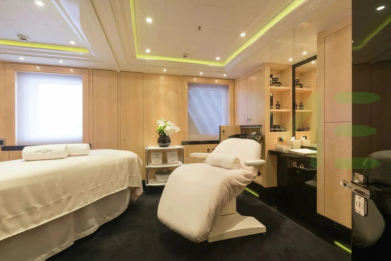 On your charter, you'll find plenty to keep you busy and entertained, particularly a piano, perfect for creating a relaxed atmosphere for you and your guests. You can recreate the full cinema experience while at sea with the included movie theatre or elsewhere, if you're in need of indulgence, the beauty salon offers a range of treatments to pamper and restore. Kick back and relax in the well-appointed spa and soothe tired limbs and reinvigorate yourself in the sauna. Take a plunge in the pool under the sun and in addition make your day truly exceptional at the beach club. A gym with all the latest equipment is available for a good work out or sit back with a glass of champagne in the deck jacuzzi.
