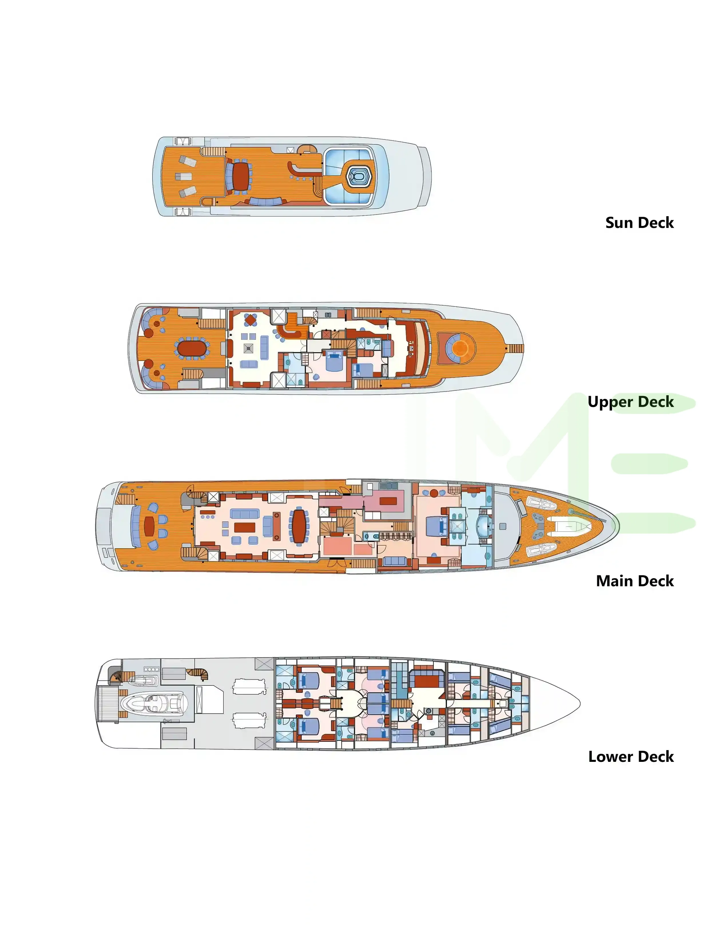 Request plans that include the layout of staterooms, guest areas, and outdoor spaces, as well as crew quarters and work areas.