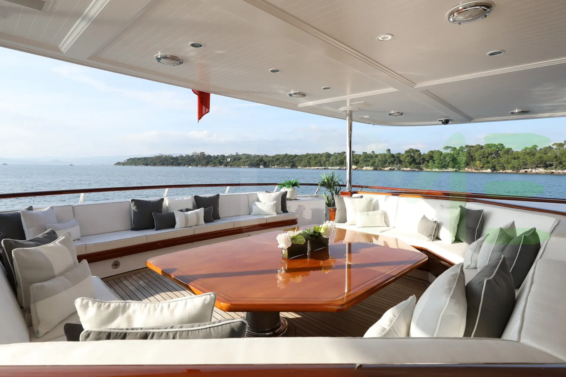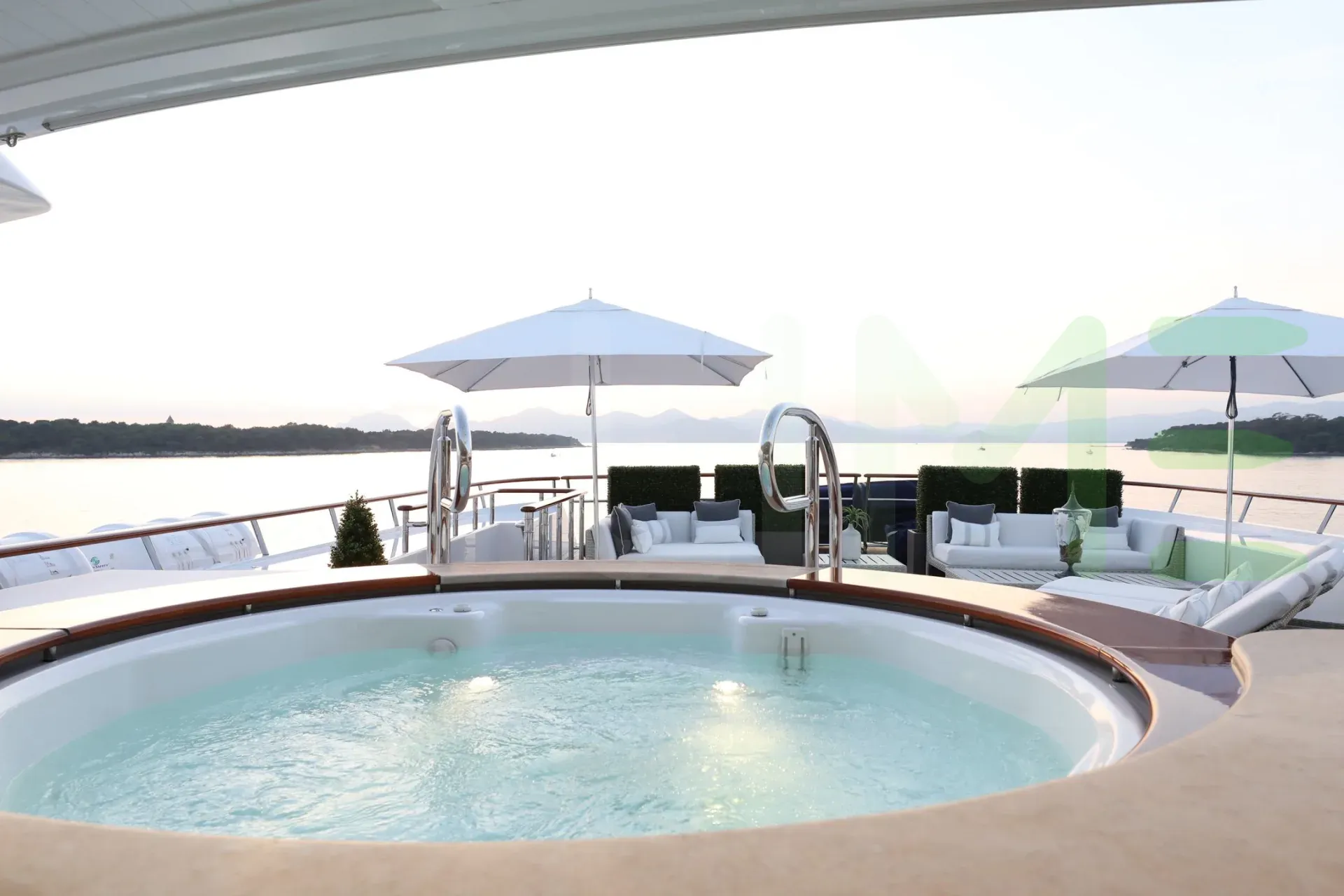 Her features include sauna, satellite communications, beach club, gym, deck jacuzzi, WiFi and air conditioning.