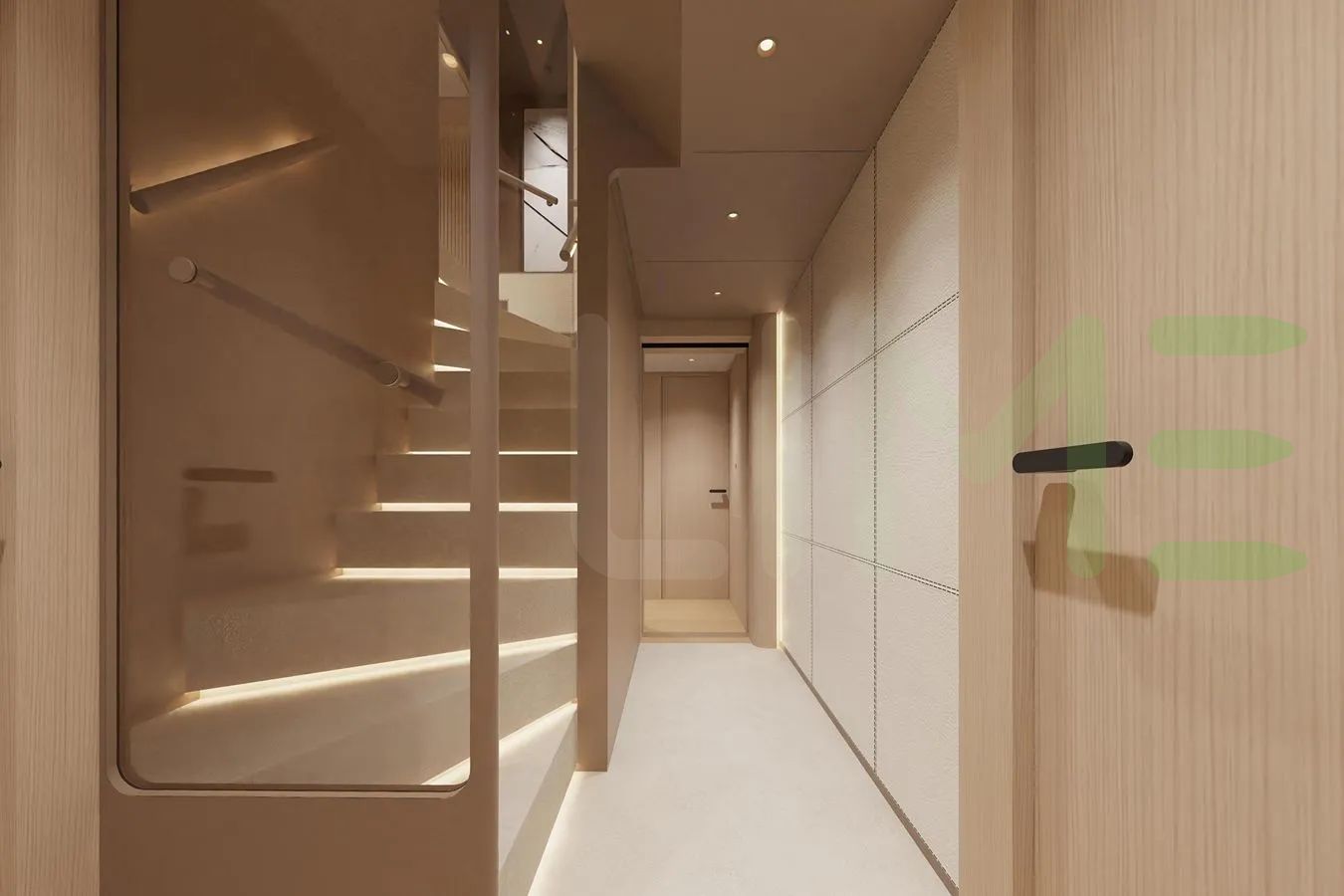 The styling of the PRESENCE yacht features exterior design by Hydro Tec and interior design by Cassetta Yacht Designers. PRESENCE also has accommodations for 7 crew members, including the yacht’s captain.